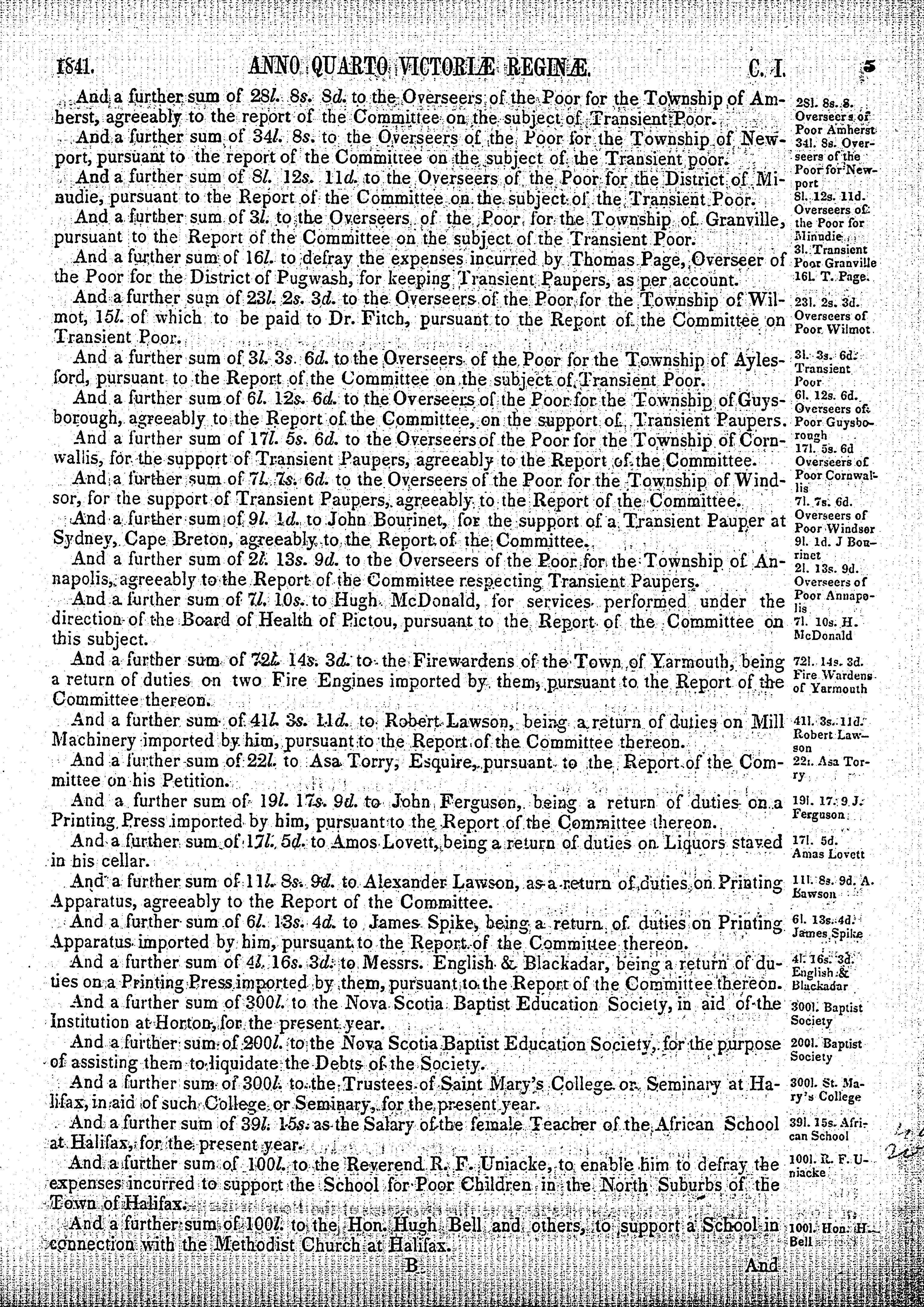 - Acts of the General Assembly of the province of Nova-Scotia anno quarto Victoriae Reginae, 1841 : 1841