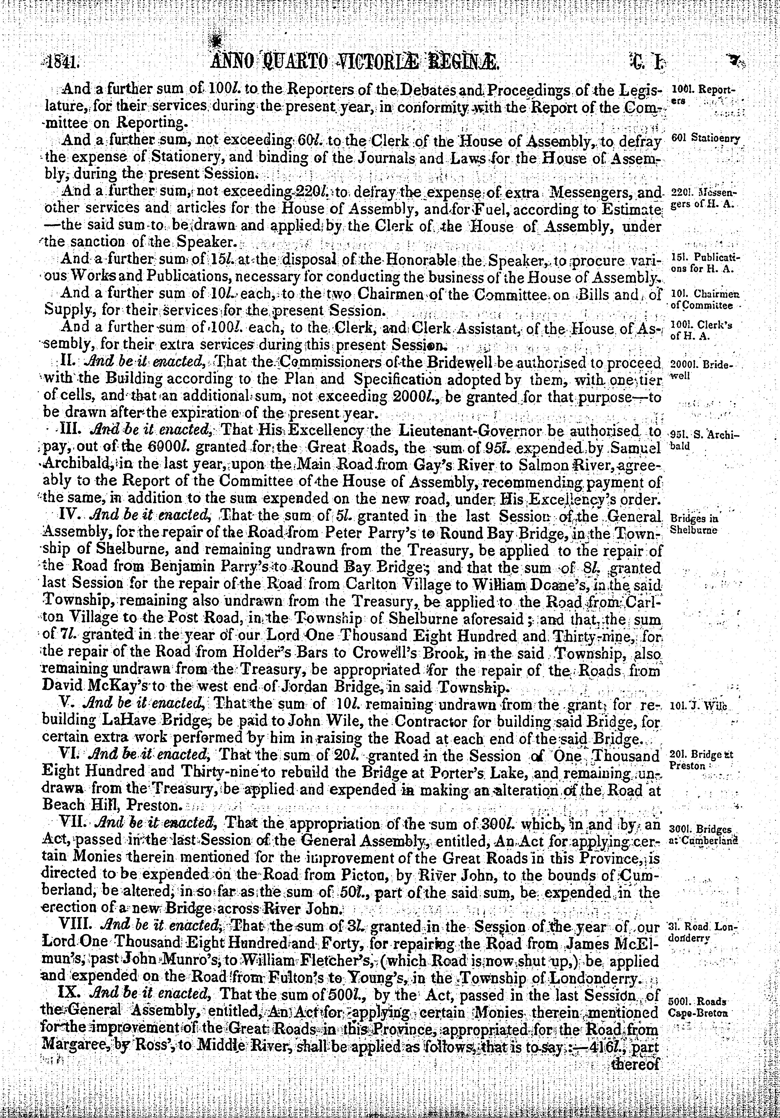 - Acts of the General Assembly of the province of Nova-Scotia anno quarto Victoriae Reginae, 1841 : 1841