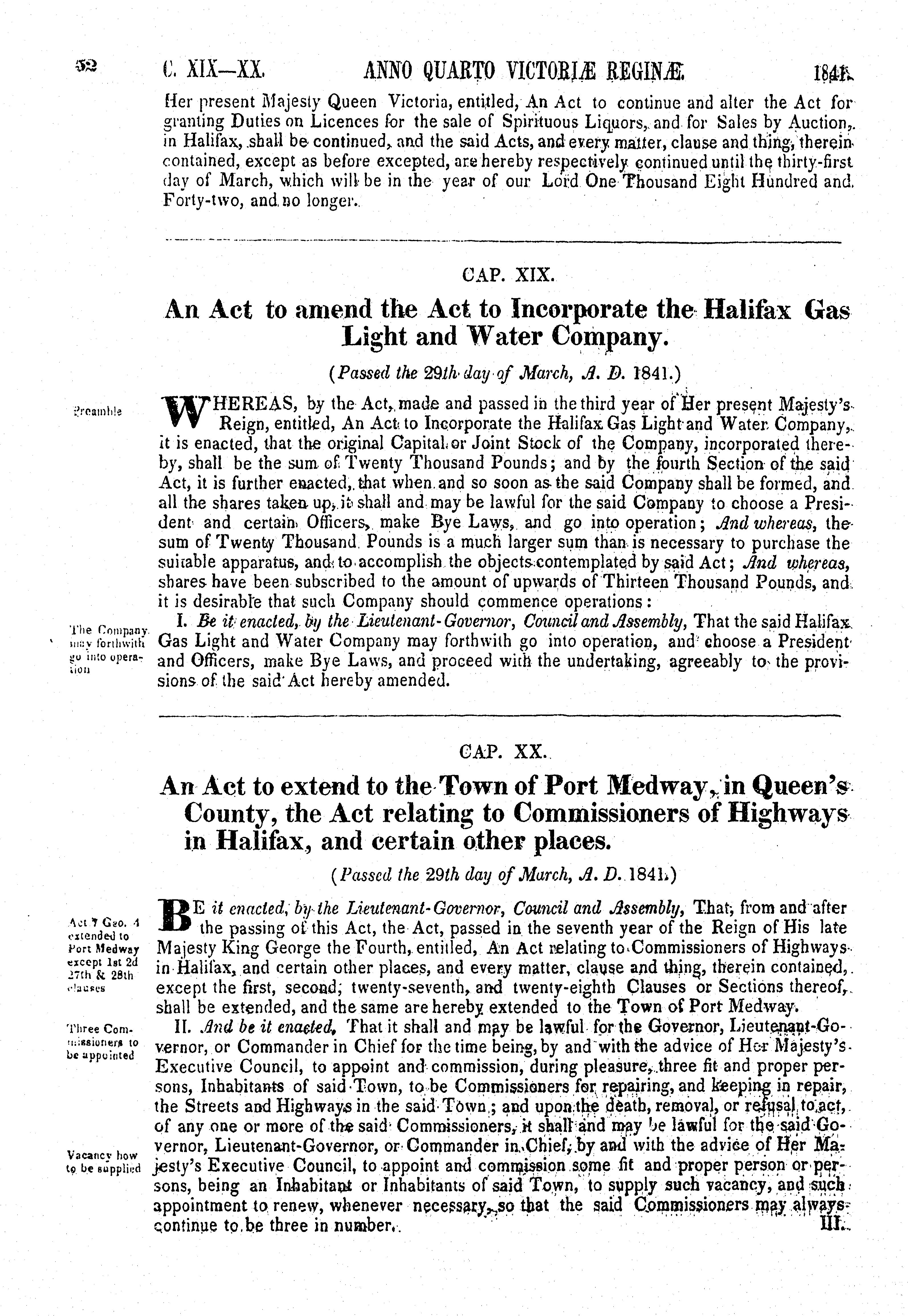 - Acts of the General Assembly of the province of Nova-Scotia anno quarto Victoriae Reginae, 1841 : 1841
