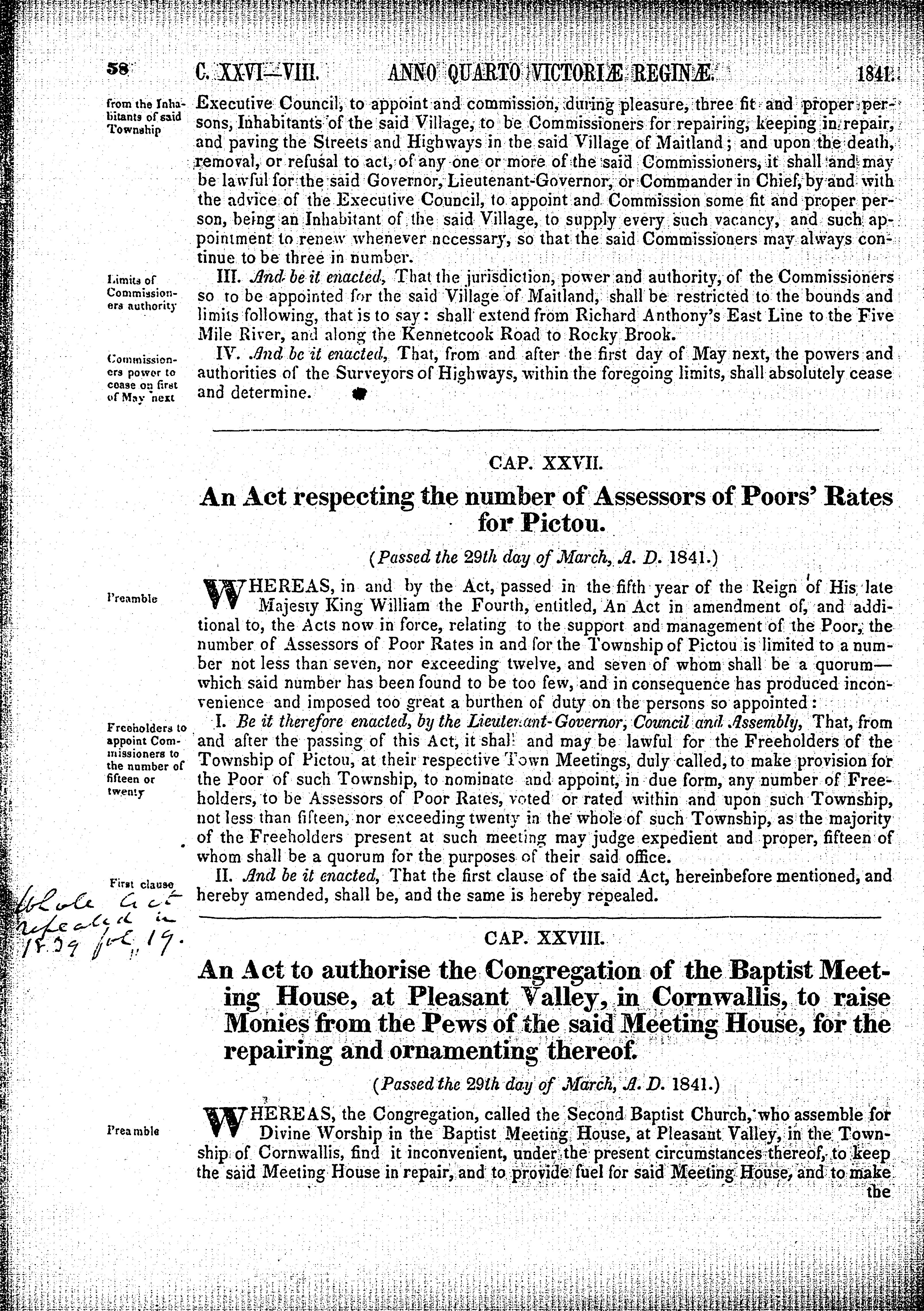 Acts of the General Assembly of the province of Nova-Scotia anno quarto Victoriae Reginae, 1841 : 1841