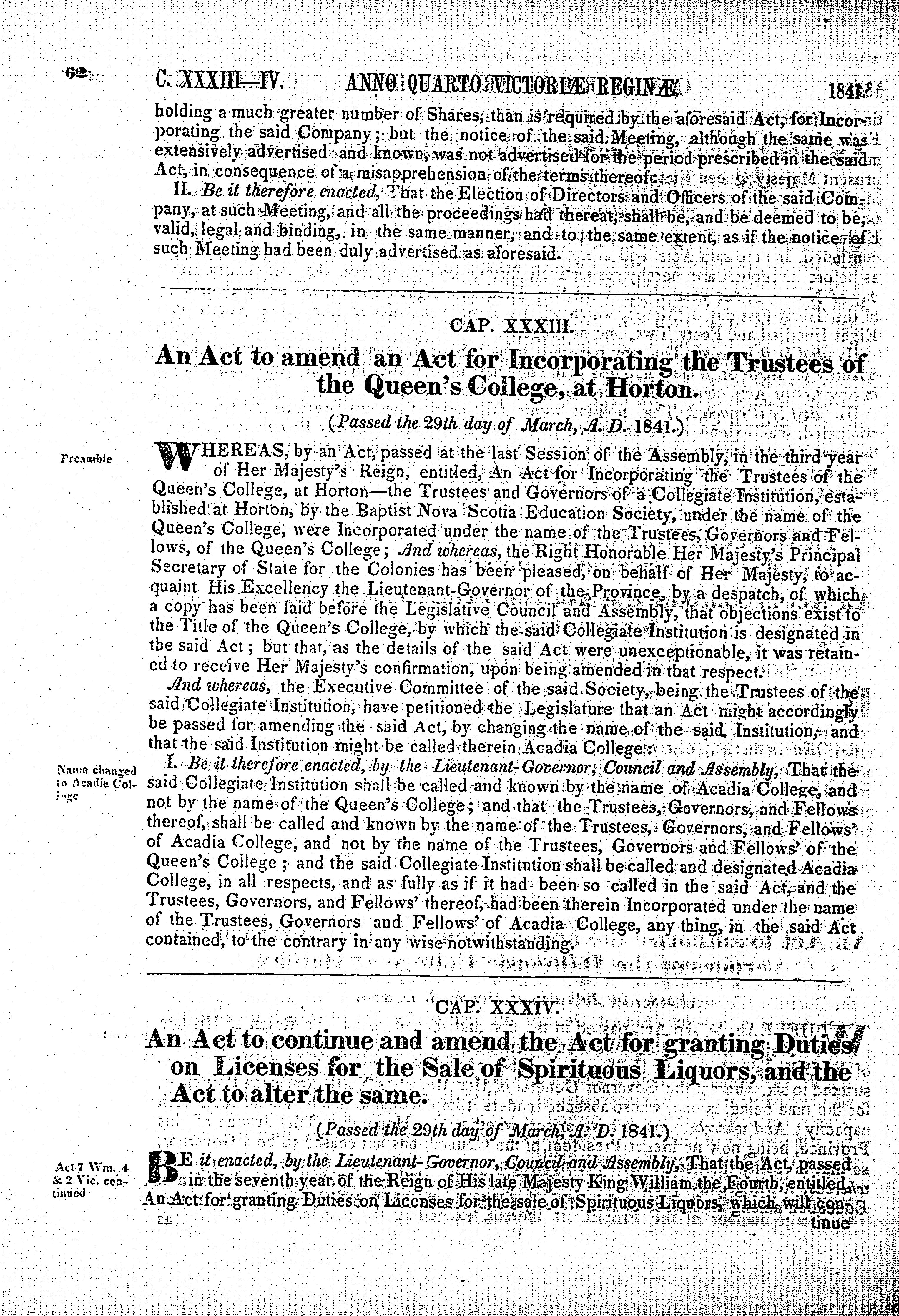 - Acts of the General Assembly of the province of Nova-Scotia anno quarto Victoriae Reginae, 1841 : 1841