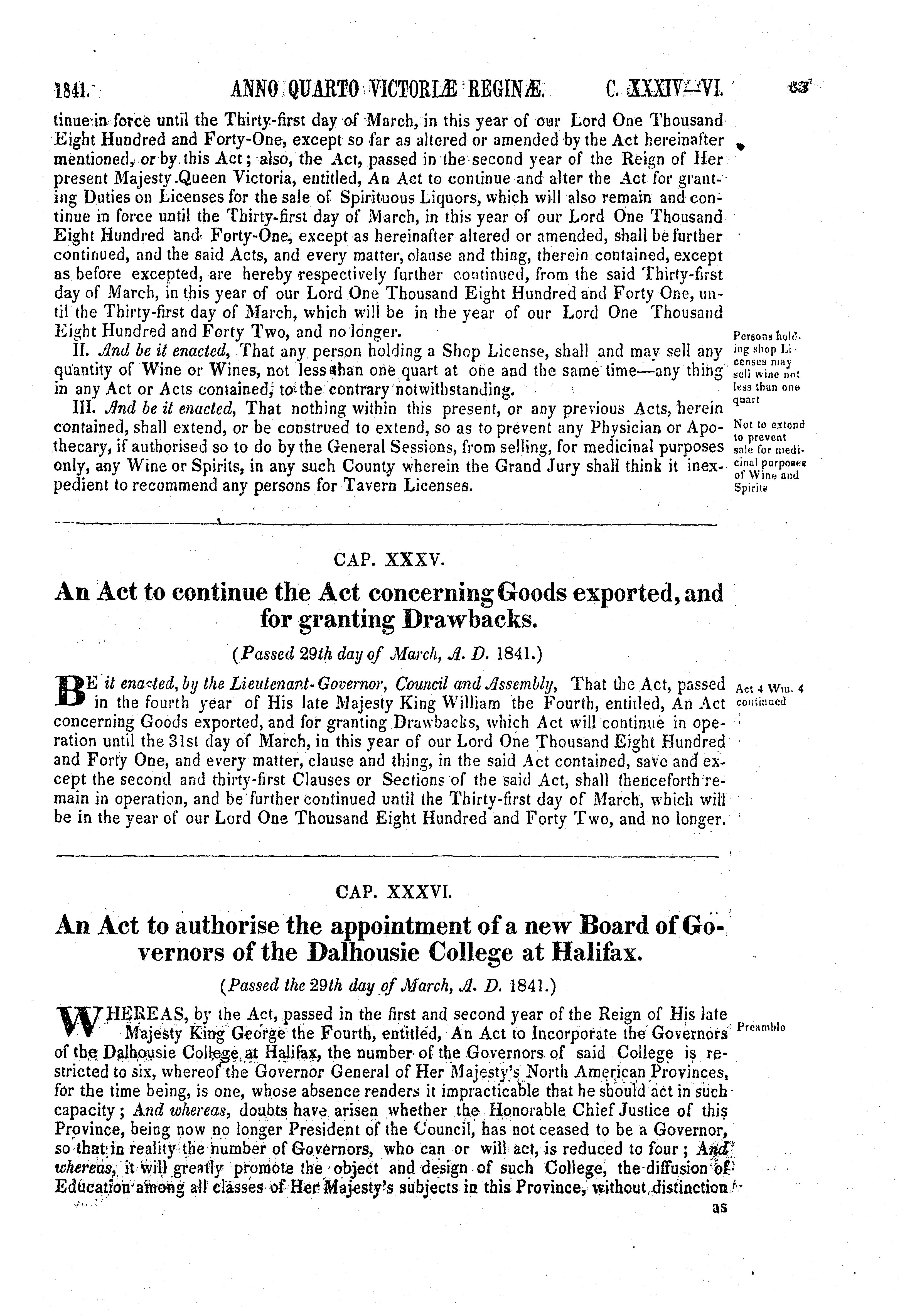 - Acts of the General Assembly of the province of Nova-Scotia anno quarto Victoriae Reginae, 1841 : 1841