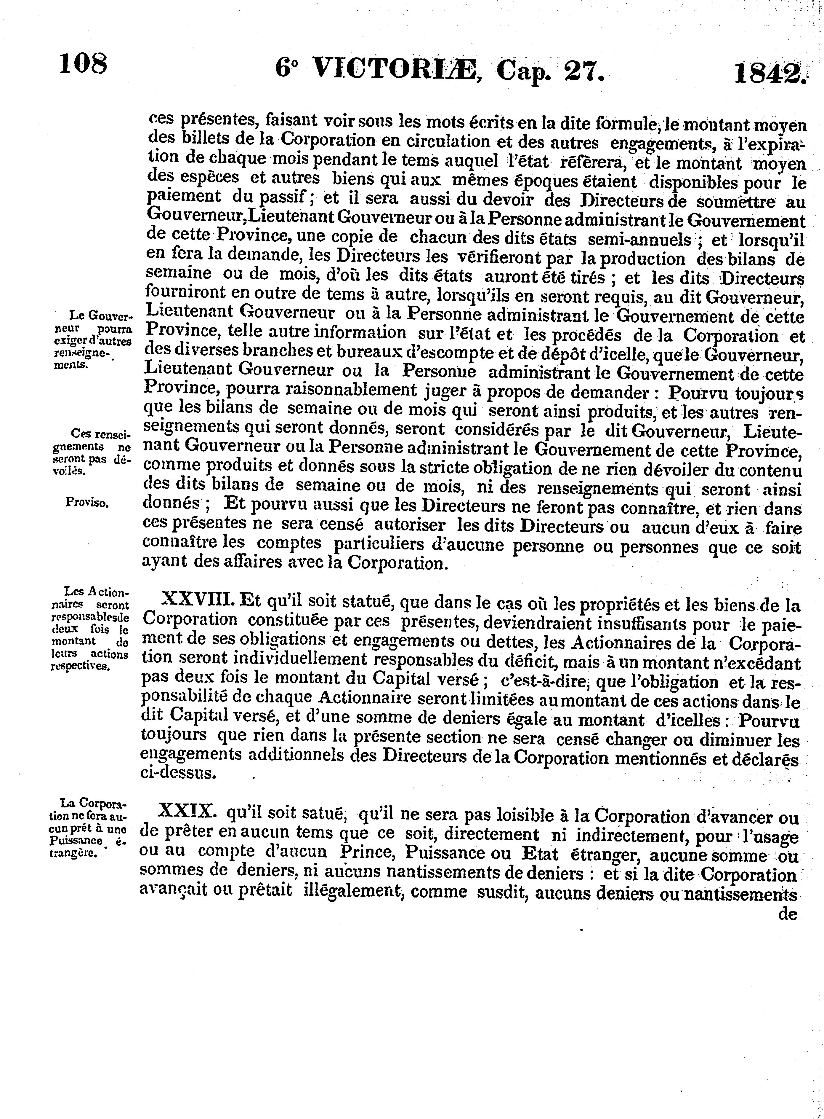 - Les statuts provinciaux du Canada : 1842