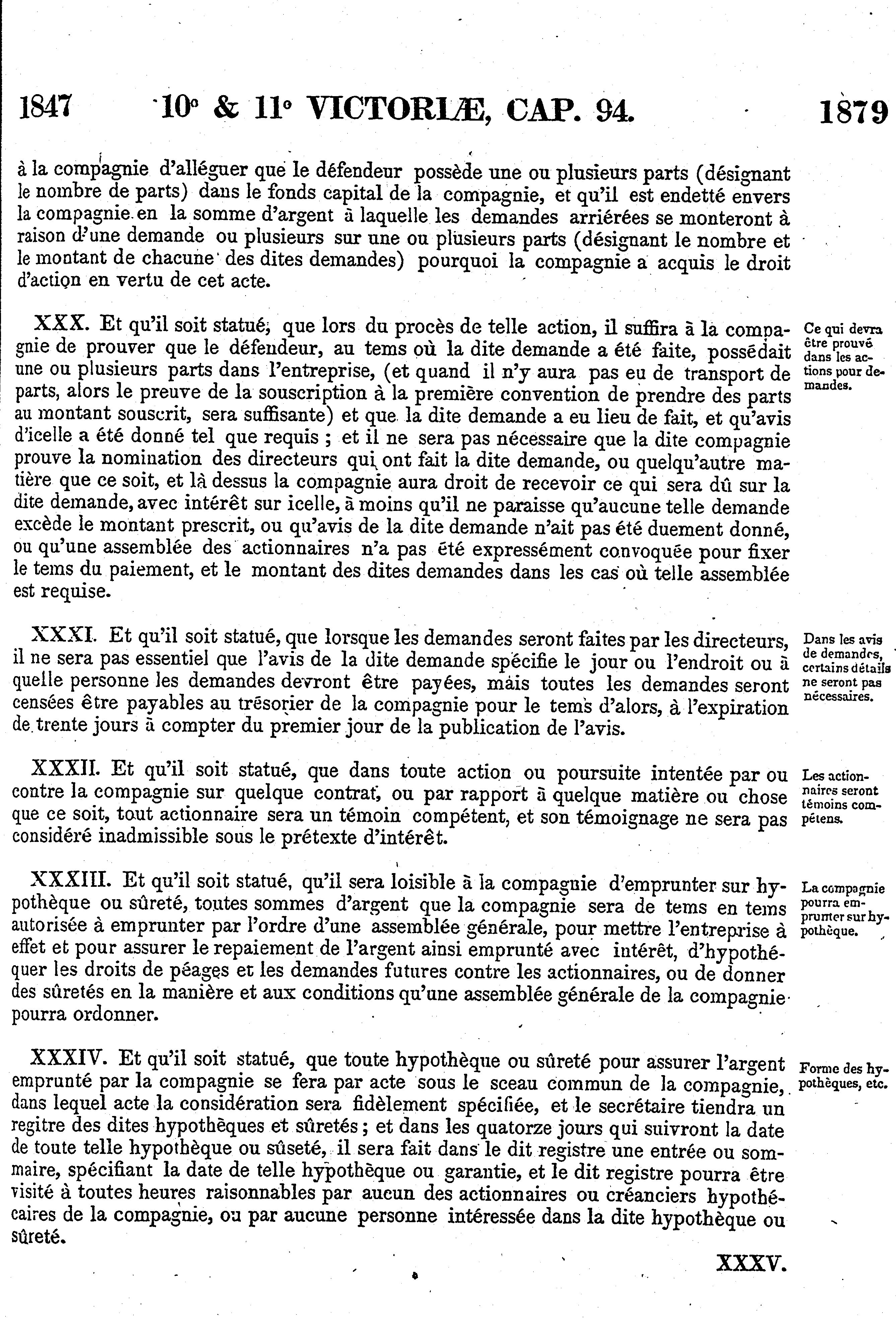 Les statuts provinciaux du Canada : Statuts provinciaux du Canada : 1847