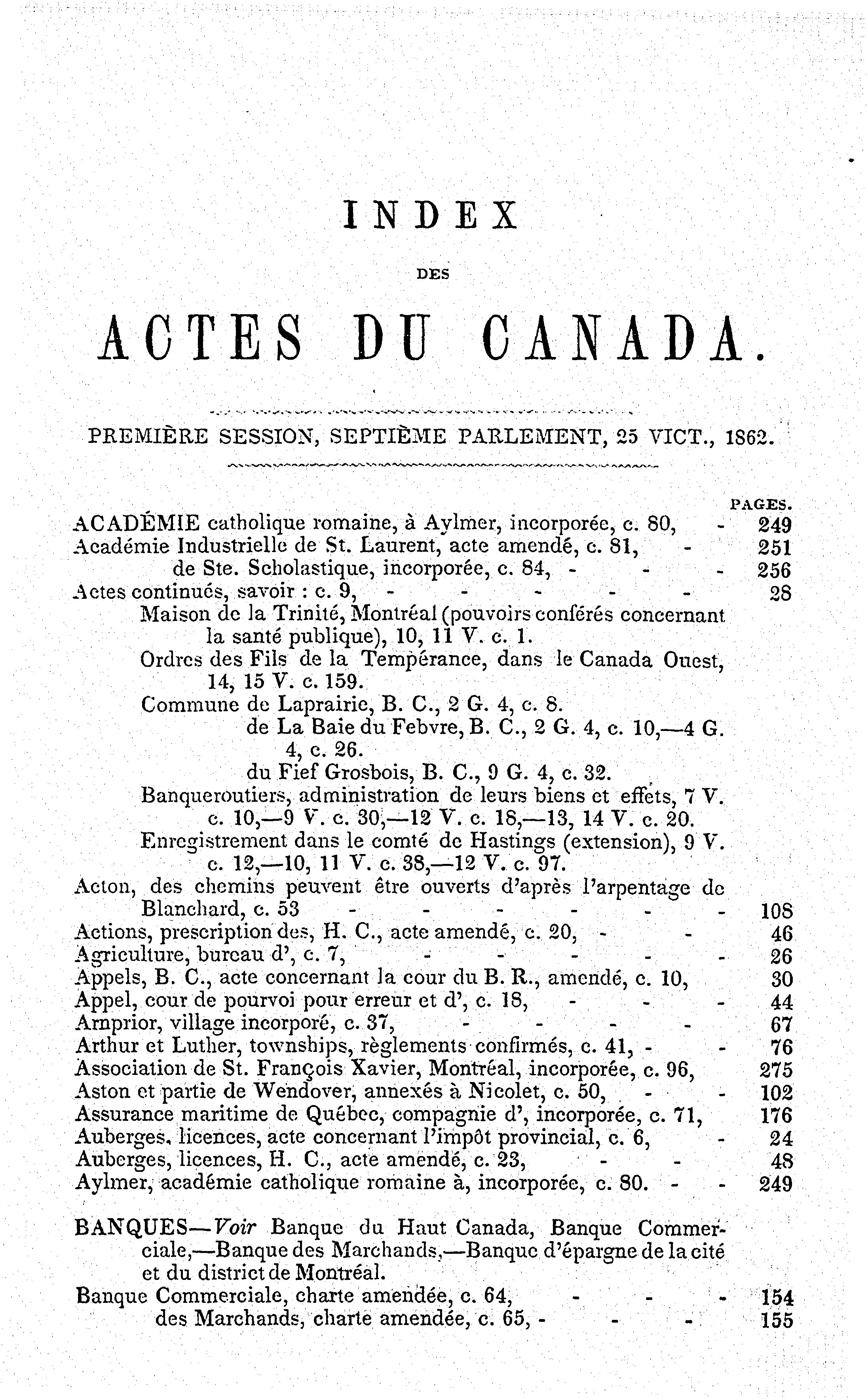 Statuts de la province du Canada passés dans la vingt-cinquième année ... et dans la première session du septième parlement du Canada : 1862