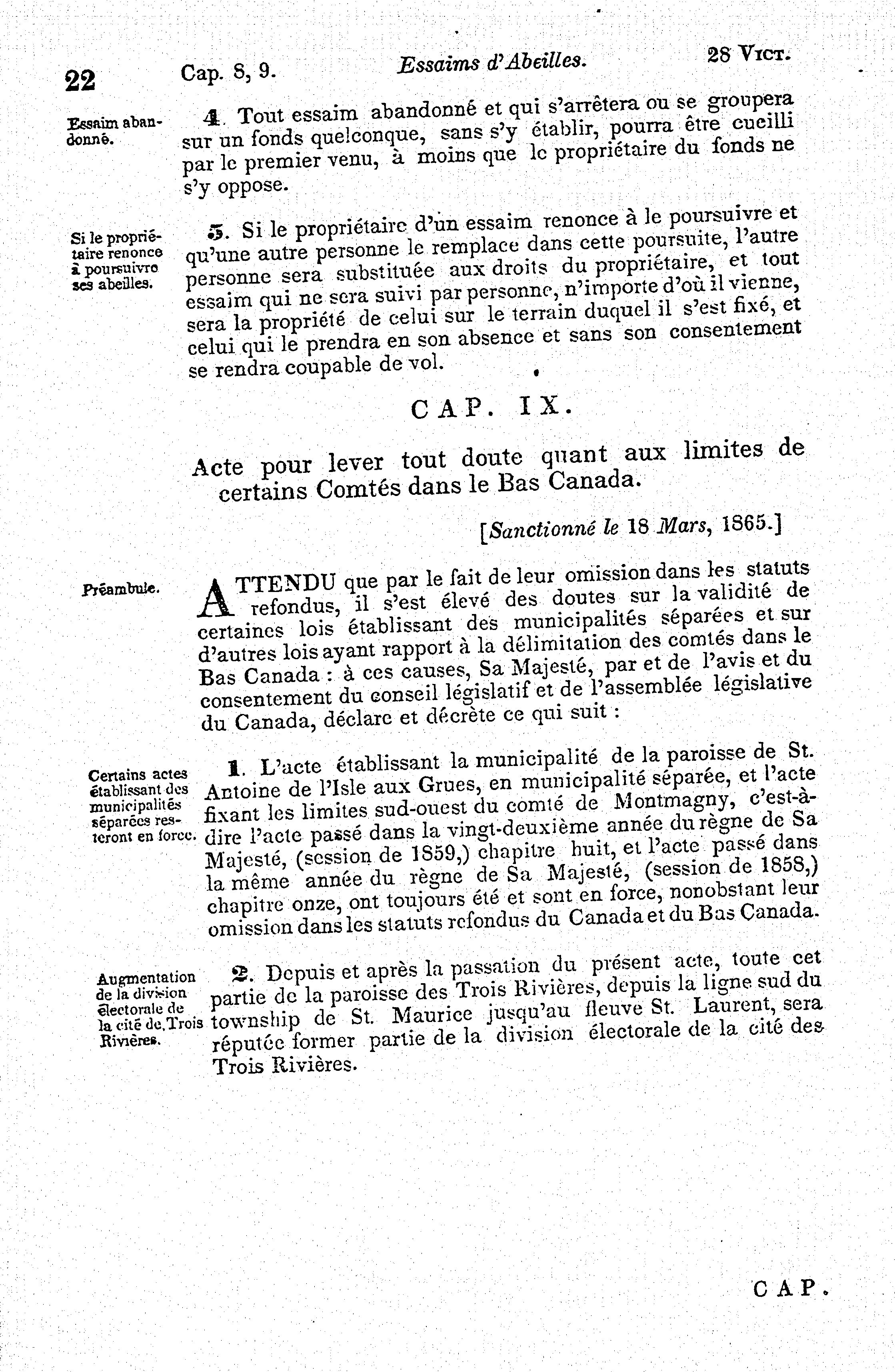 Statuts de la province du Canada passés dans la vingt-huitième année ... et dans la troisième session du huitième parlement du Canada : 1865