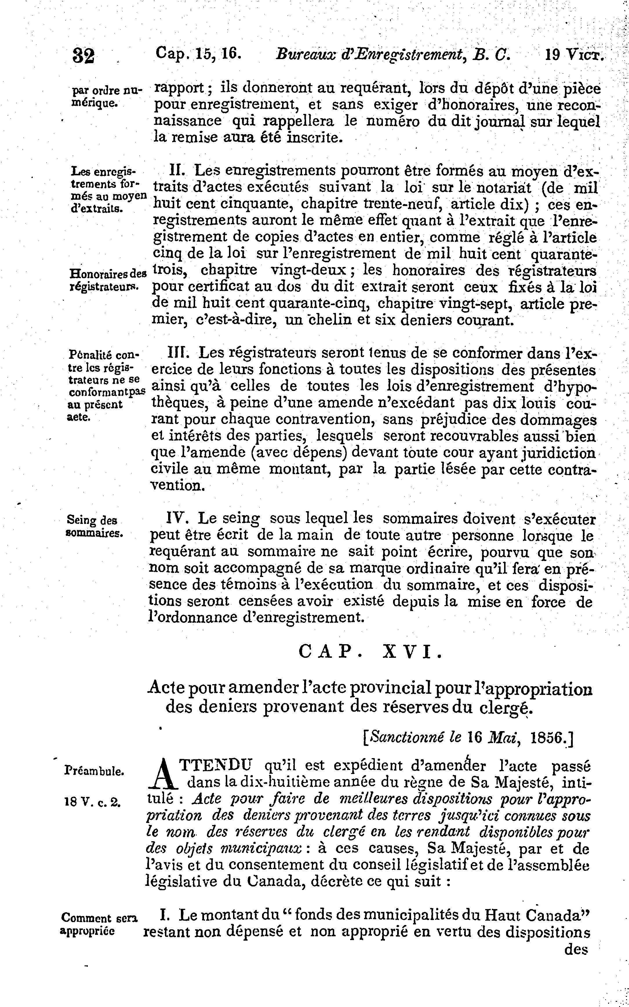 Statuts de la province du Canada passés dans la dix-neuvième et vingtième années ... et dans la seconde session du cinquième parlement du Canada : 1856