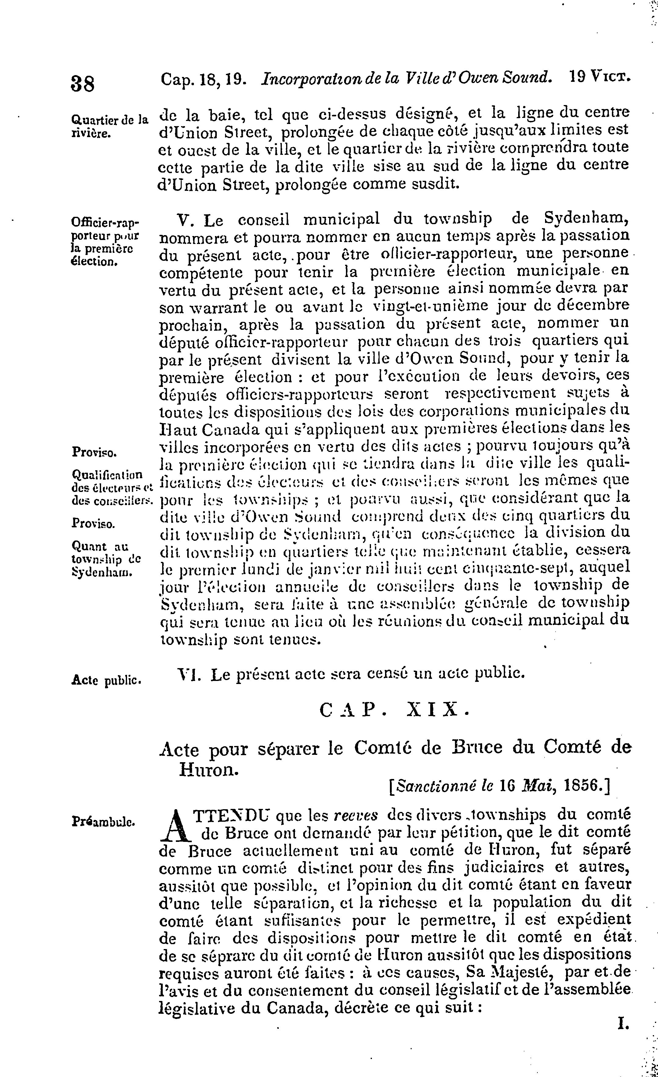 Statuts de la province du Canada passés dans la dix-neuvième et vingtième années ... et dans la seconde session du cinquième parlement du Canada : 1856
