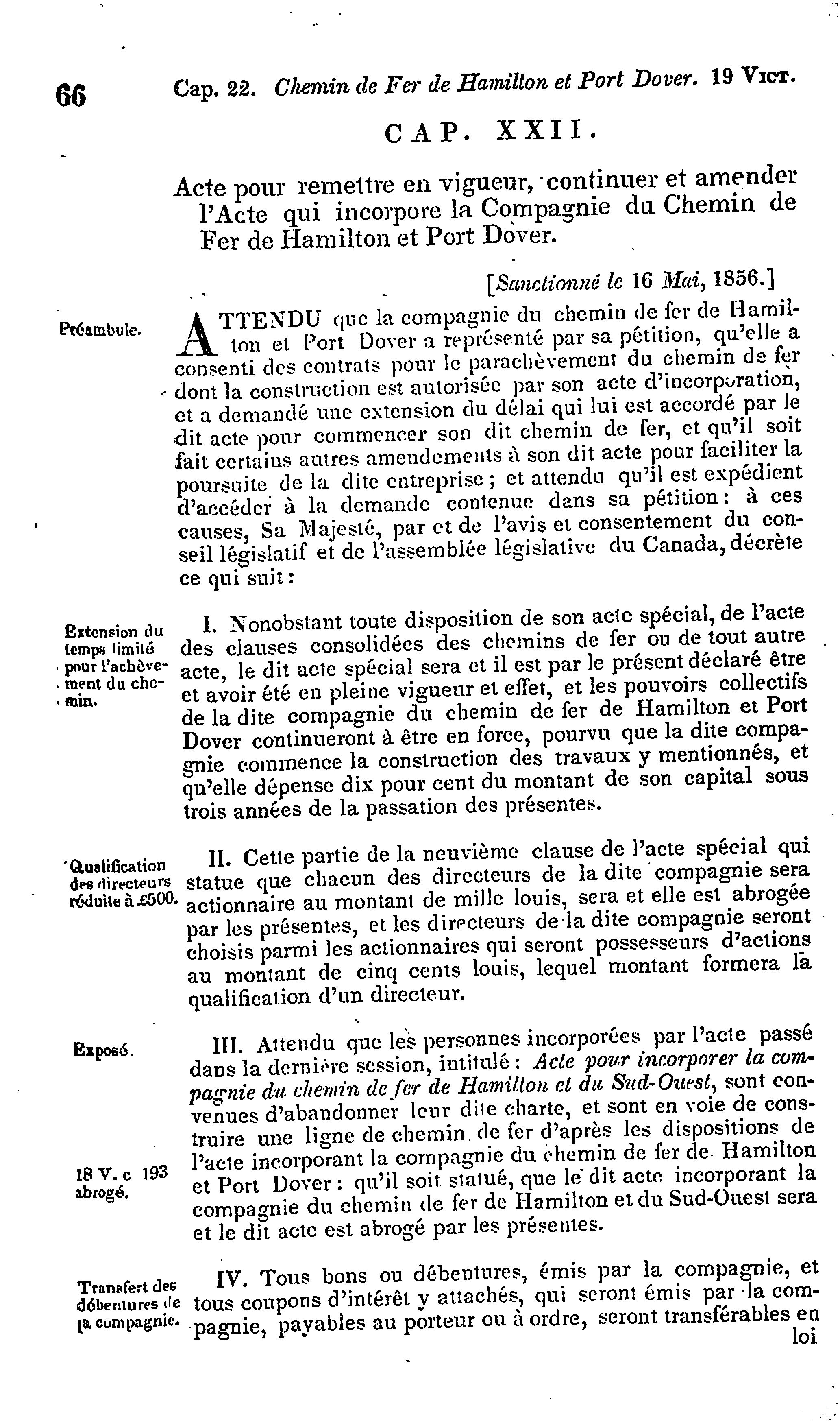 Statuts de la province du Canada passés dans la dix-neuvième et vingtième années ... et dans la seconde session du cinquième parlement du Canada : 1856
