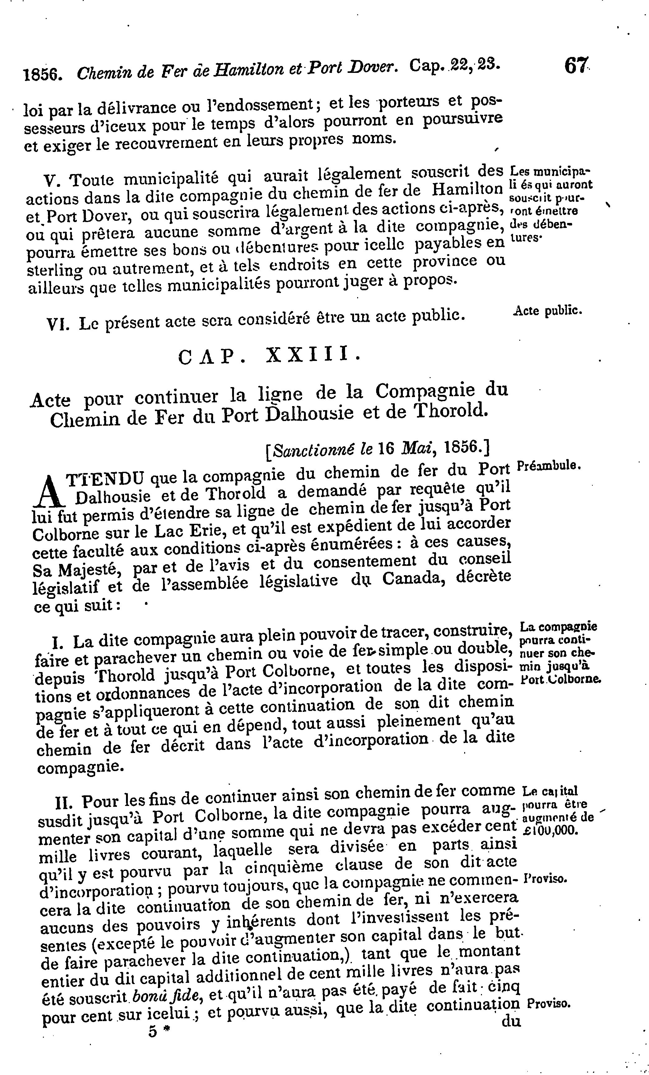 Statuts de la province du Canada passés dans la dix-neuvième et vingtième années ... et dans la seconde session du cinquième parlement du Canada : 1856