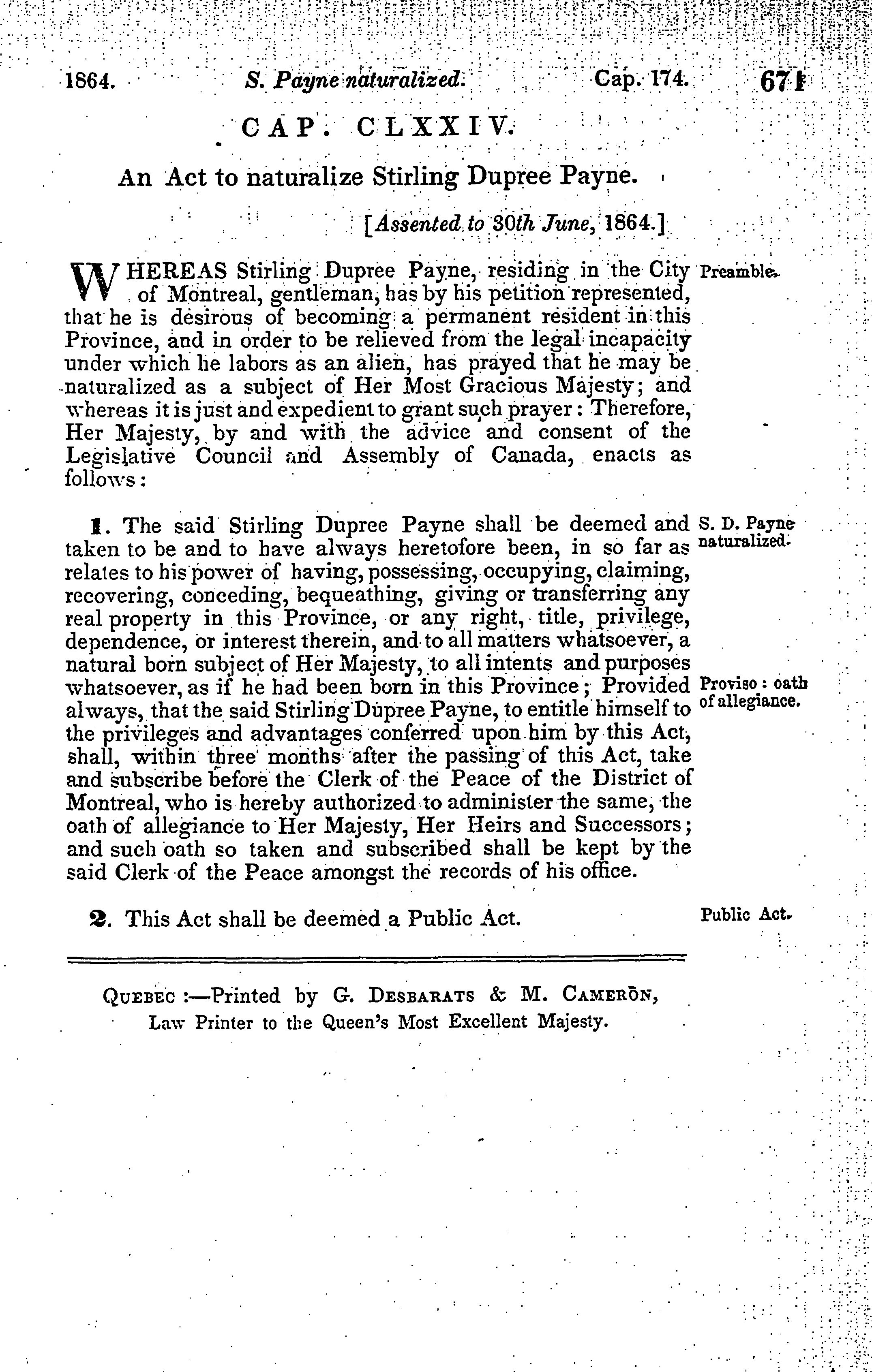 Quebec : G. Desbarats and M. Cameron, 1864.