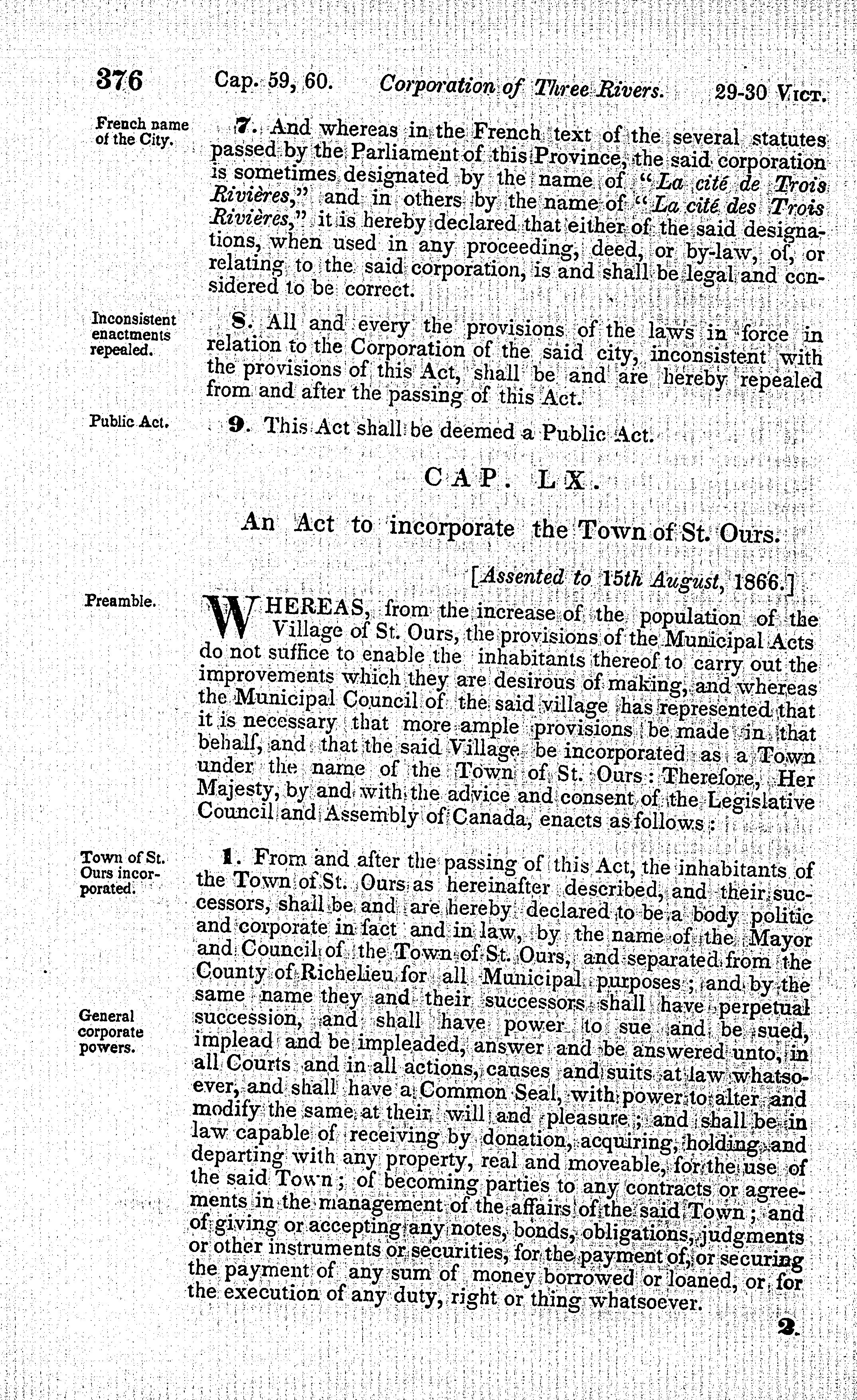 Statutes of the Province of Canada passed in the session ... being the fifth session of the eighth Parliament of Canada : 1866