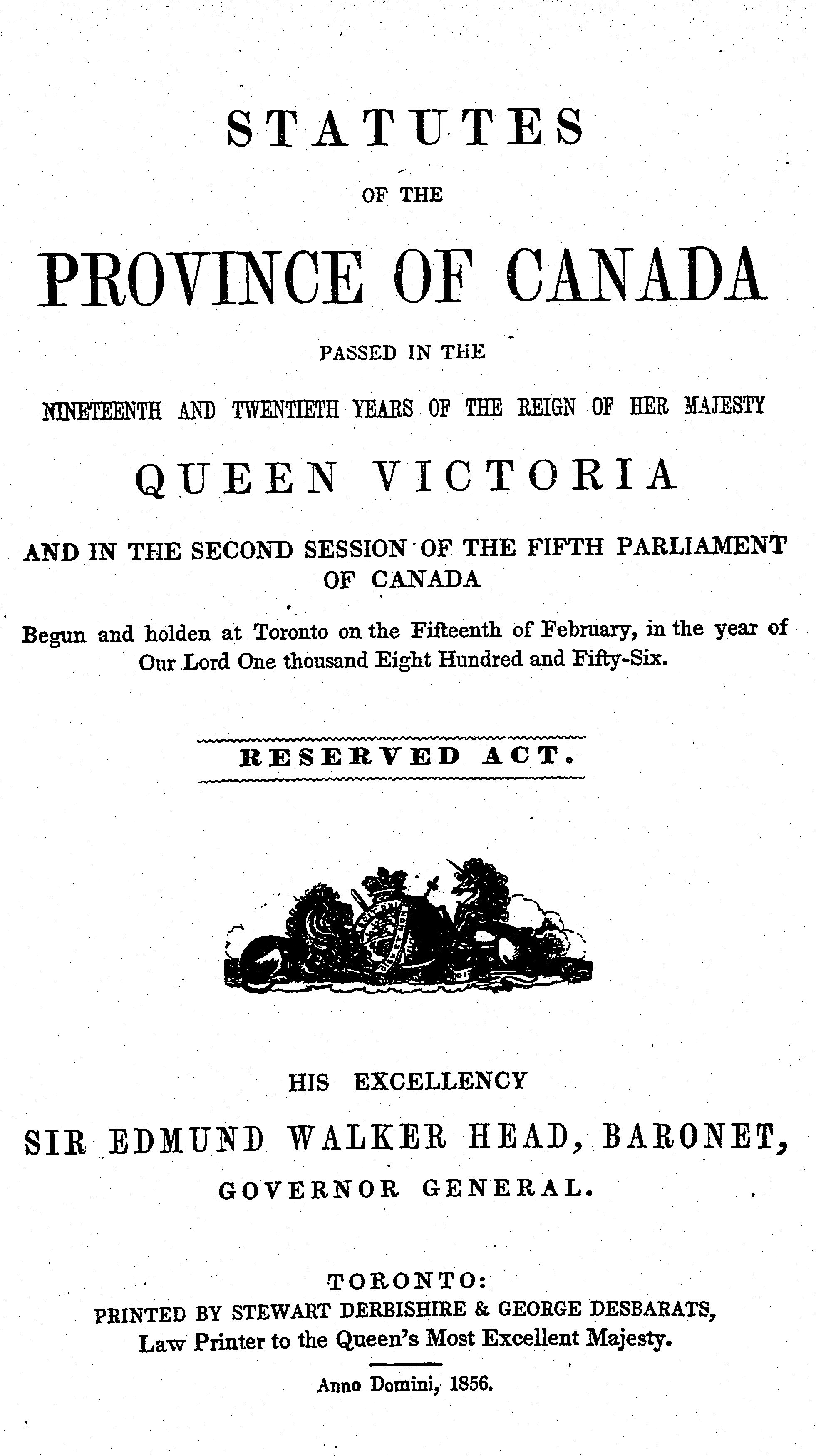 Statutes of the Province of Canada passed ... in the second session of the fifth Parliament of Canada : 1856