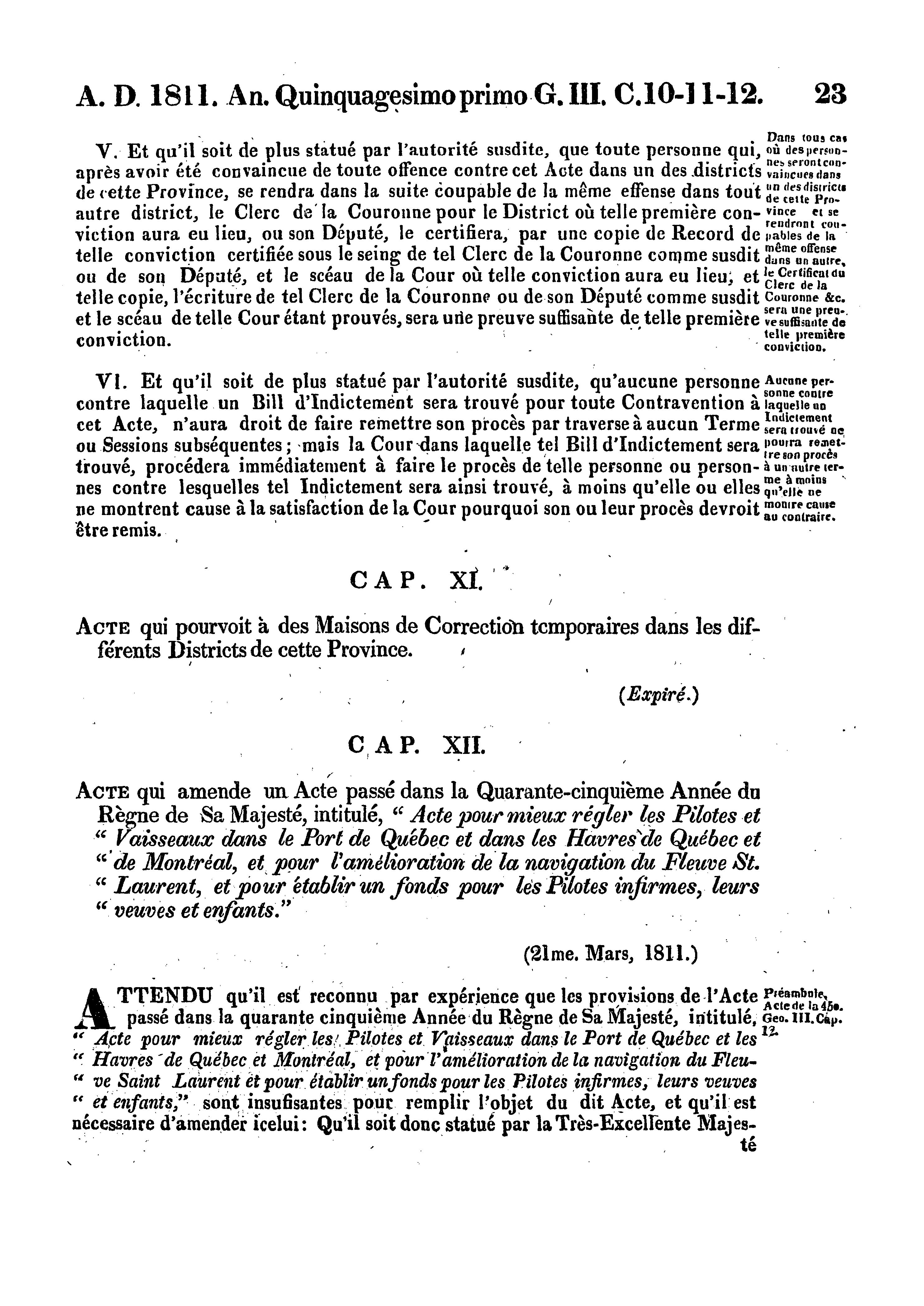 The provincial statutes of Lower Canada ... [being the first session of the seventh provincial parliament of Lower-Canada] : 1811 (Exp./Repealed)