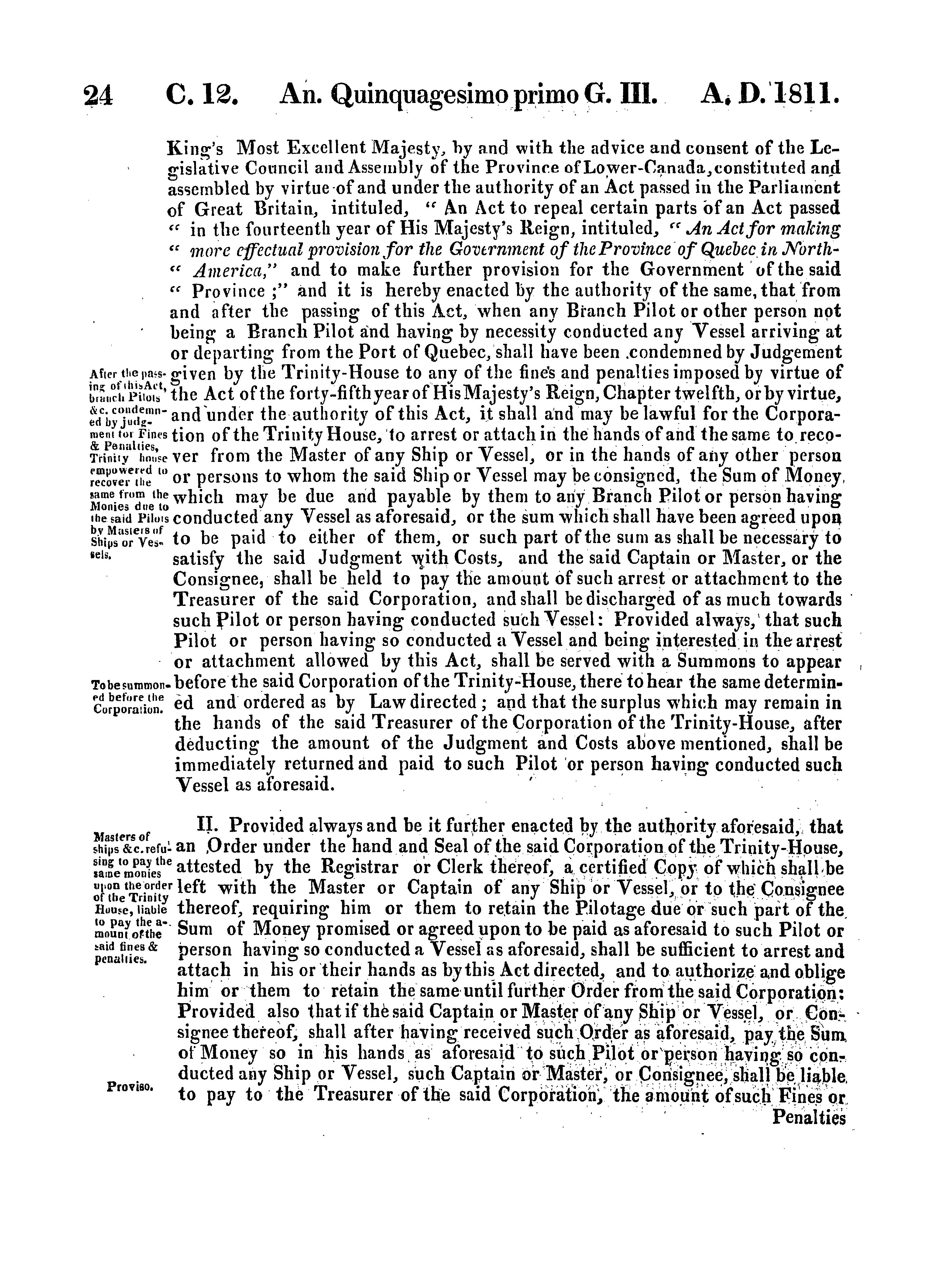 The provincial statutes of Lower Canada ... [being the first session of the seventh provincial parliament of Lower-Canada] : 1811 (Exp./Repealed)
