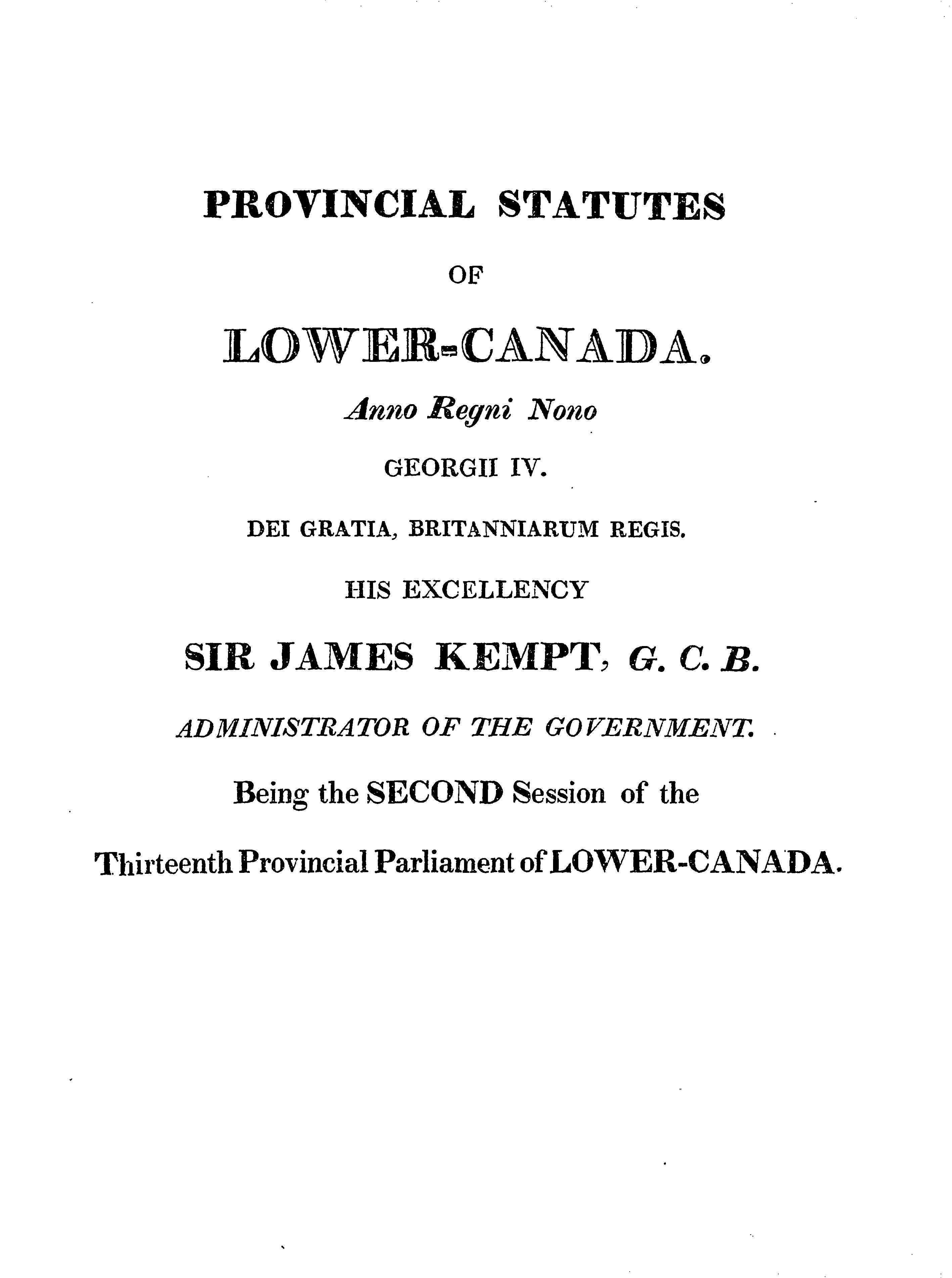 The Provincial statutes of Lower-Canada ... [being the second session of the thirteenth provincial Parliament of Lower-Canada] : 1829
