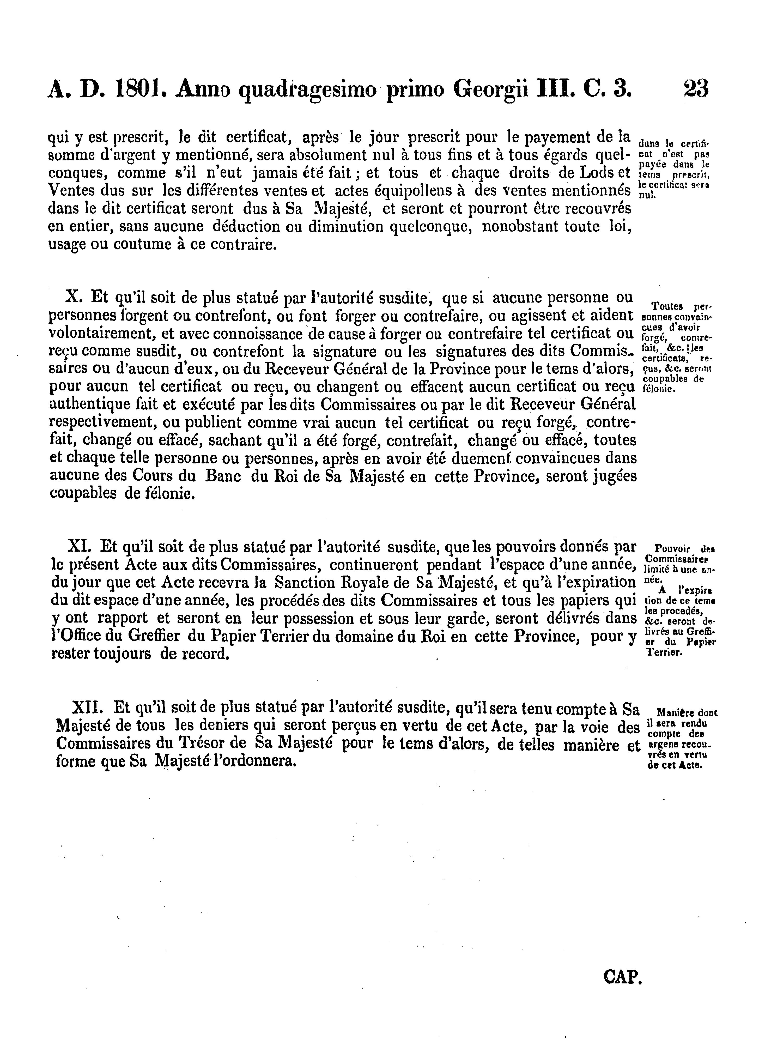 The provincial statutes of Lower Canada ... being the first session of the third Provincial Parliament of Lower Canada : 1801 (Exp./Repealed)