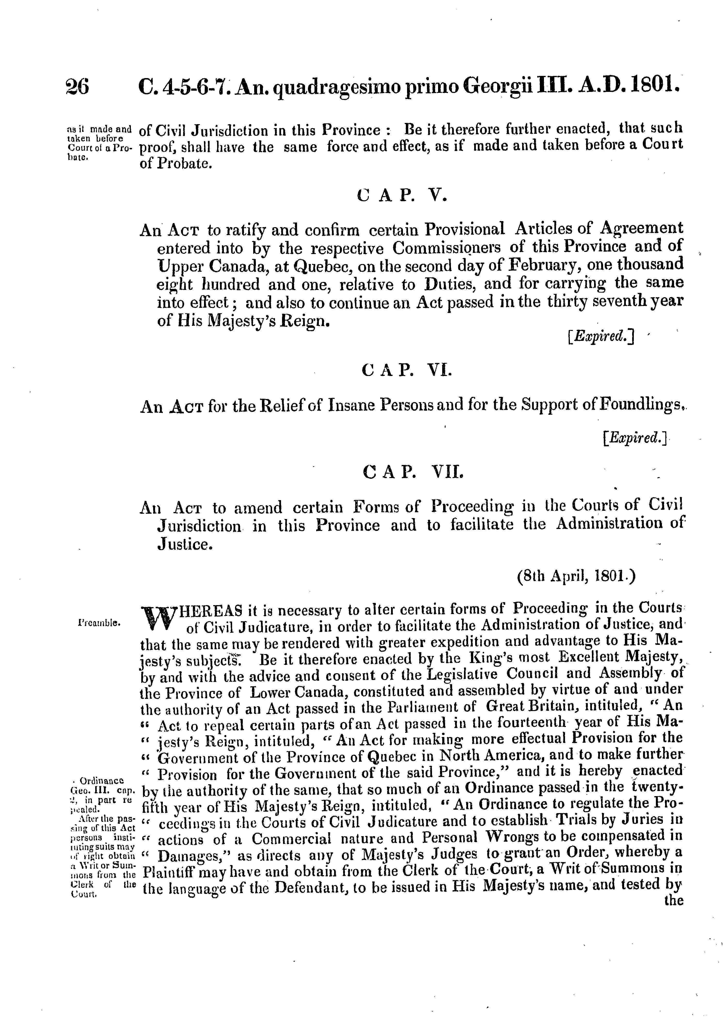 The provincial statutes of Lower Canada ... being the first session of the third Provincial Parliament of Lower Canada : 1801 (Exp./Repealed)