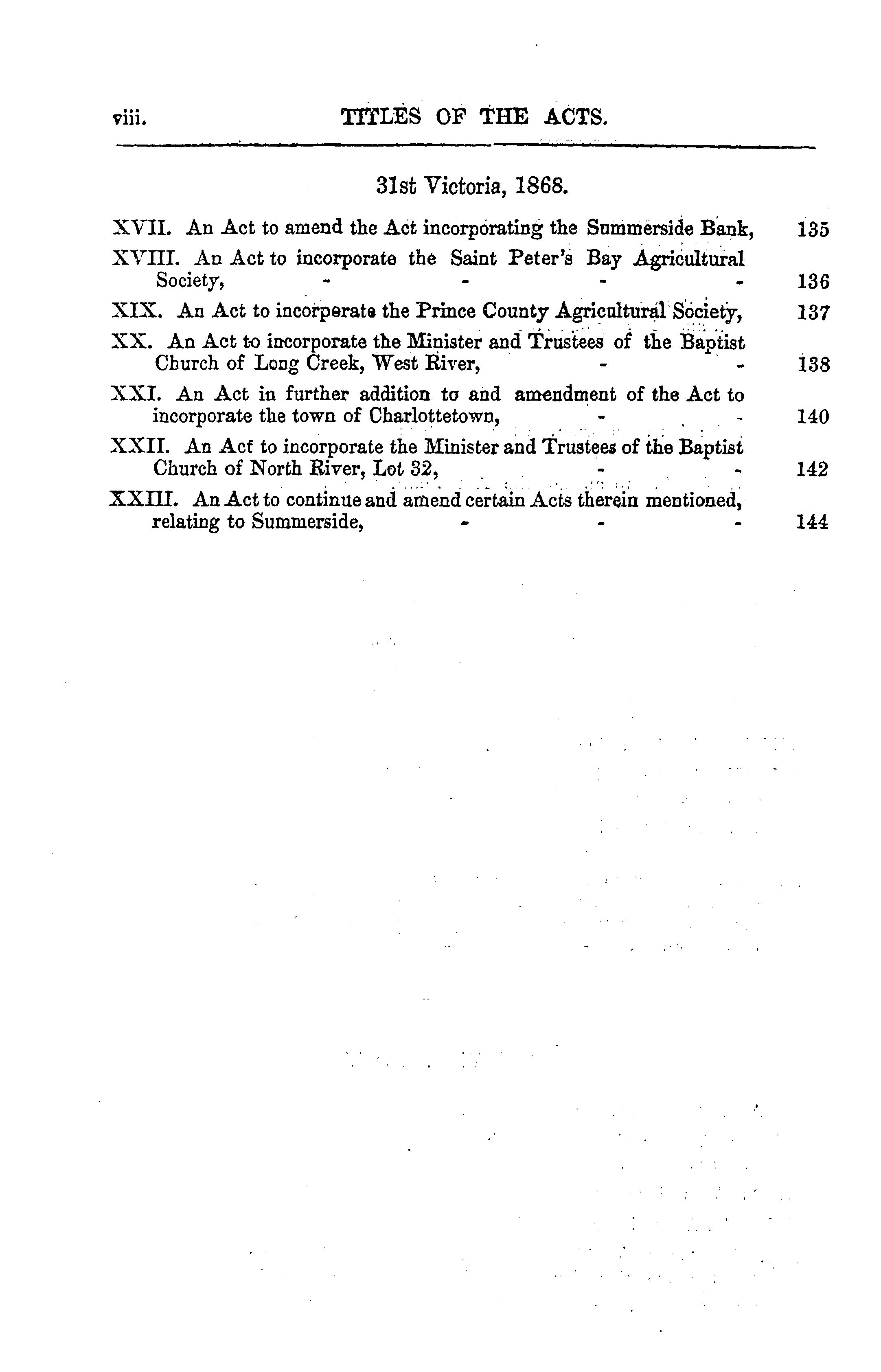 The private and local acts of the General Assembly of Prince Edward Island ... : from the twenty-sixth year of the reign of Her Most Gracious Majesty Queen Victoria, A.D. 1863 to the thirty-first year of the same reign, A.D. 1868. - Adresse bibliographique