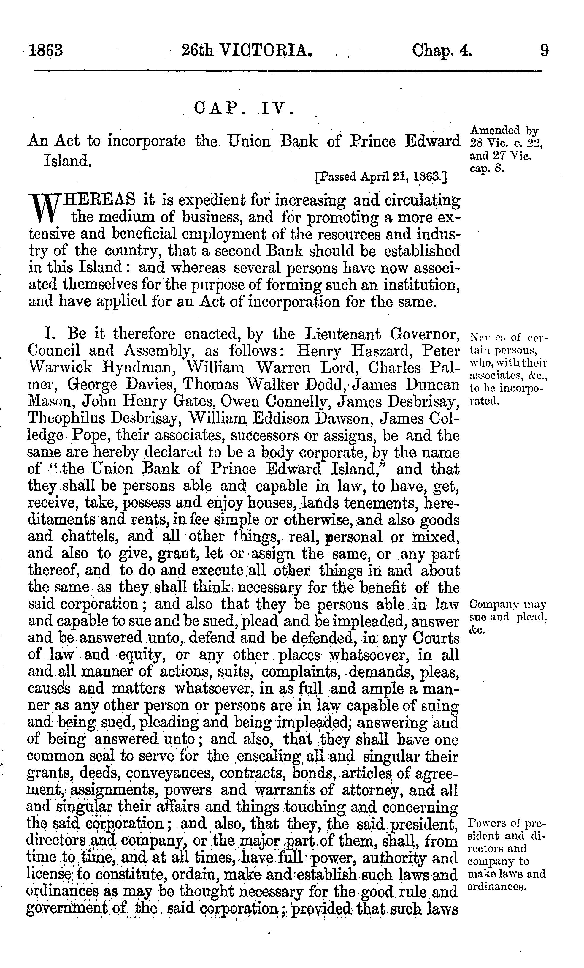 The private and local acts of the General Assembly of Prince Edward Island ... : from the twenty-sixth year of the reign of Her Most Gracious Majesty Queen Victoria, A.D. 1863 to the thirty-first year of the same reign, A.D. 1868. - Published