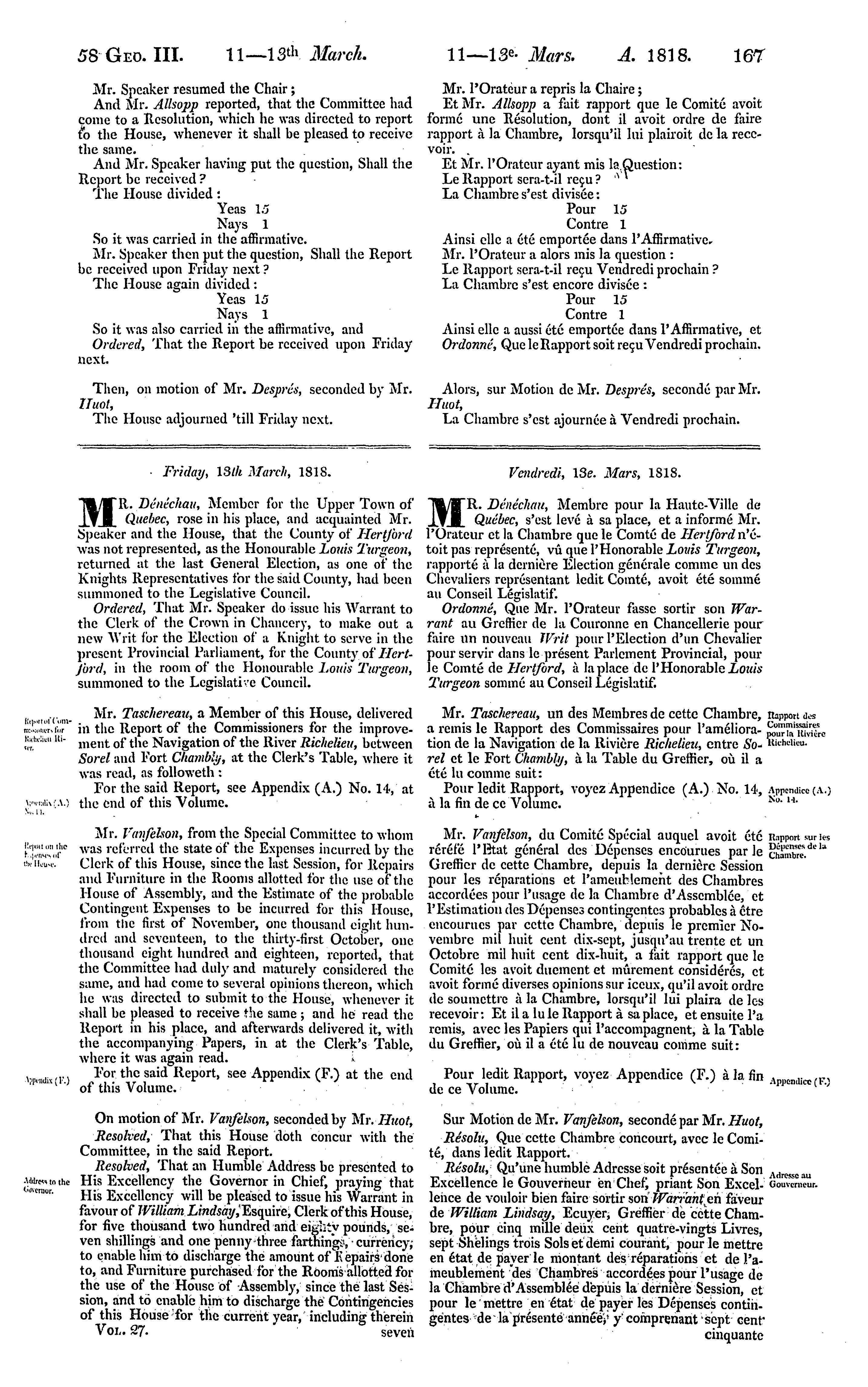 Journaux de la Chambre d'assemblée du Bas-Canada, depuis le 7e janvier, jusqu'au 1er avril, 1818, dans la cinquante-huitième année du règne de sa Majesté George Trois, étant la seconde session du neuvième Parlement provincial de cette province, sess. 1818 - Adresse bibliographique