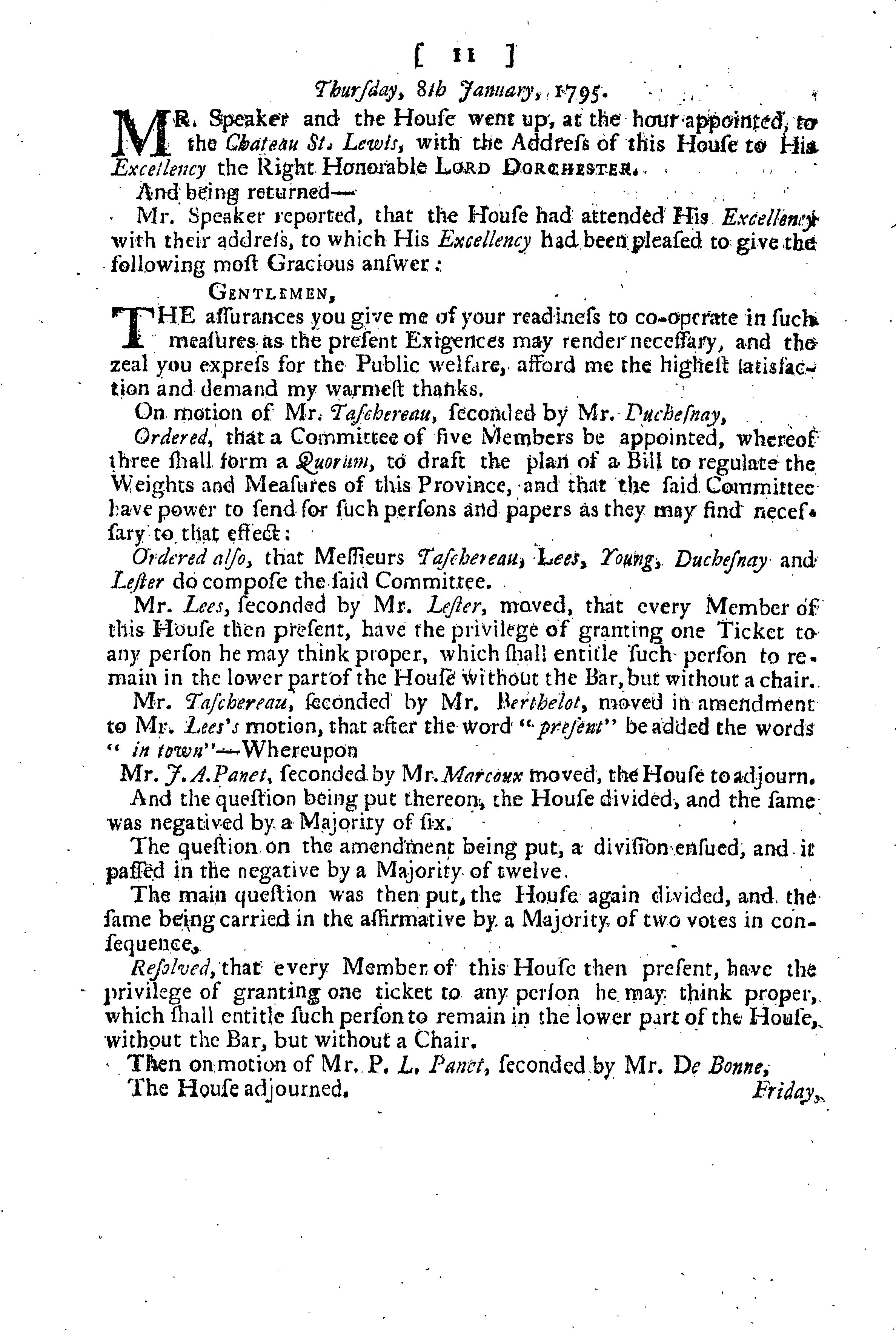 Journal de la Chambre d'assemblée du Bas-Canada du 5me janvier, au 7me mai 1795, inclusivement
