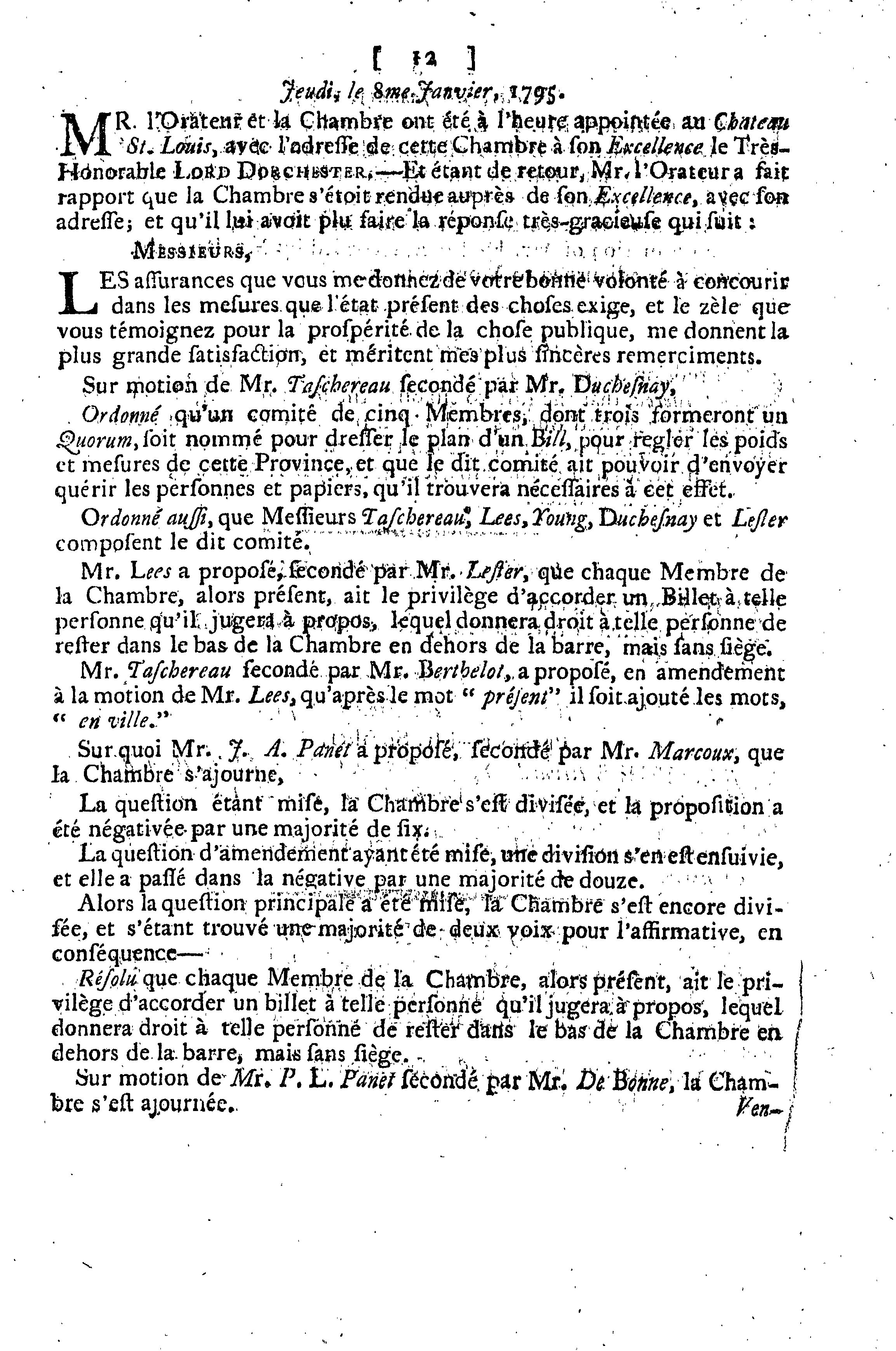 Journal de la Chambre d'assemblée du Bas-Canada du 5me janvier, au 7me mai 1795, inclusivement