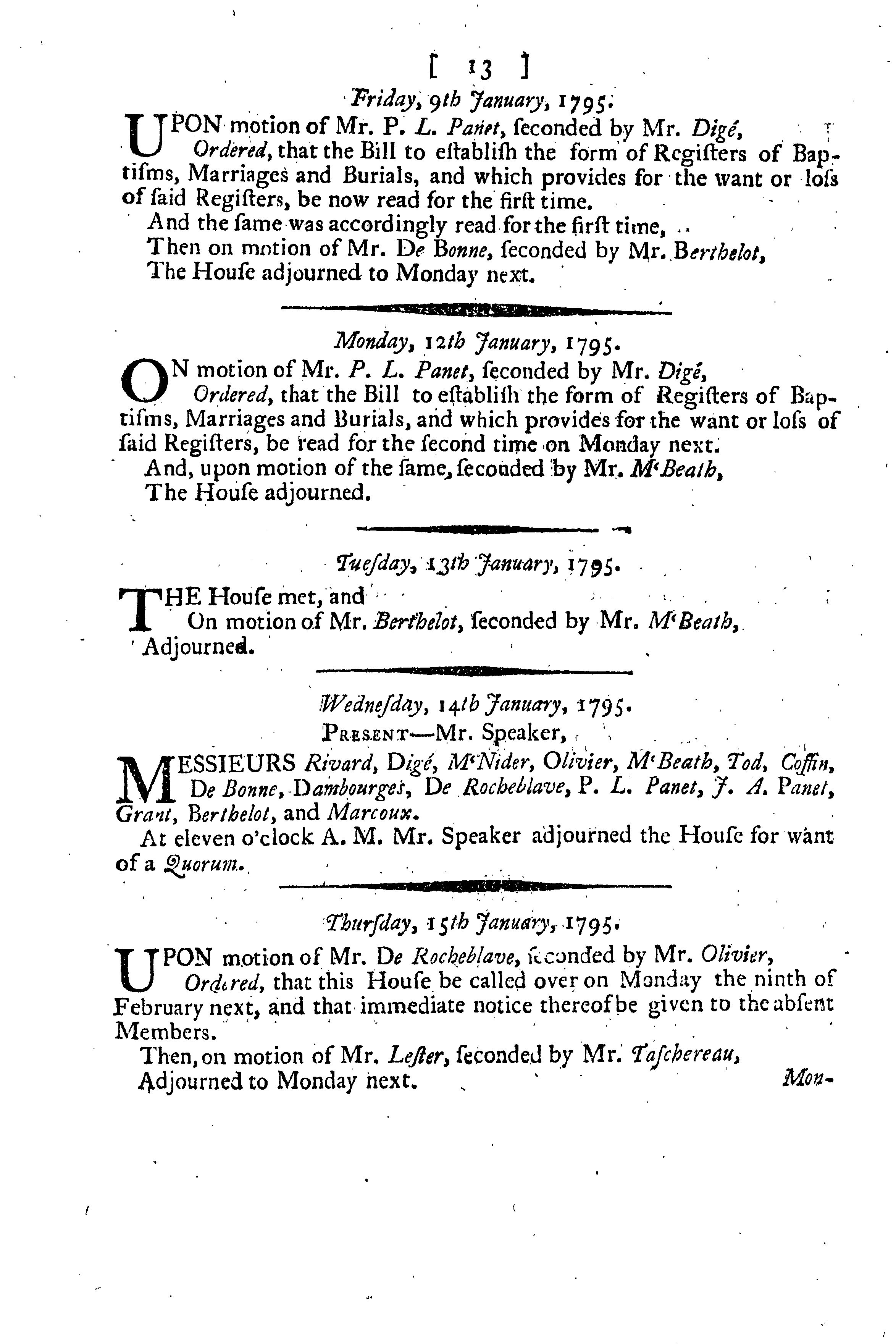 Journal de la Chambre d'assemblée du Bas-Canada du 5me janvier, au 7me mai 1795, inclusivement