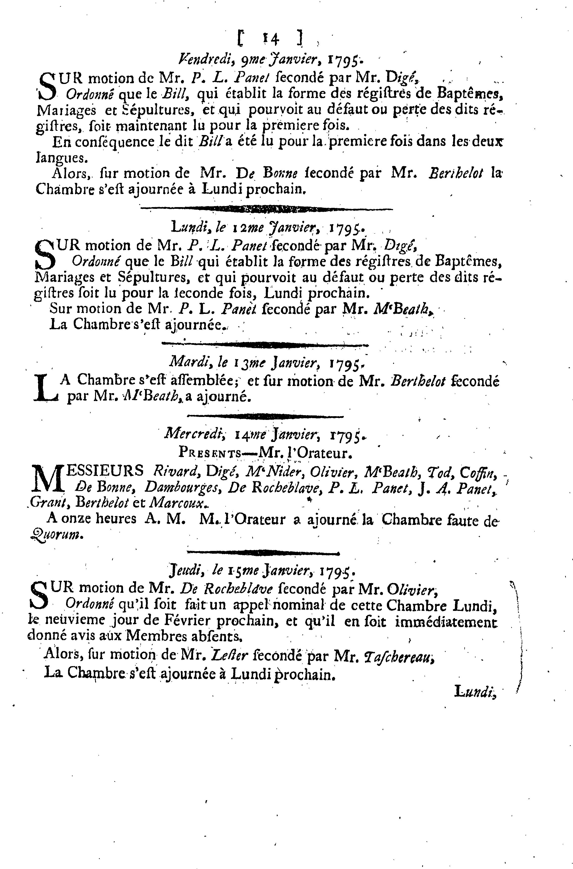 Journal de la Chambre d'assemblée du Bas-Canada du 5me janvier, au 7me mai 1795, inclusivement
