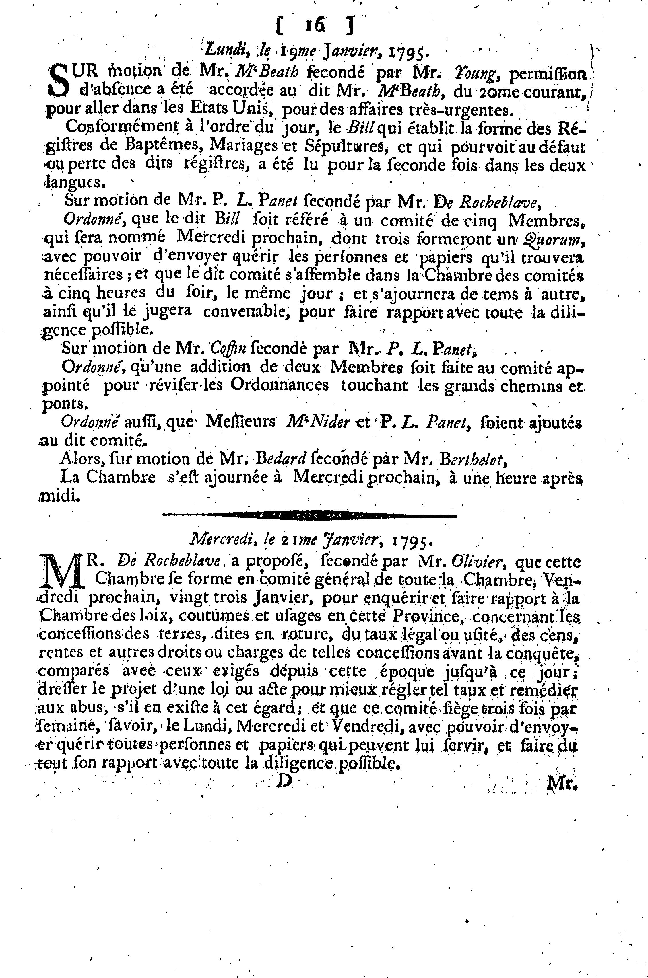Journal de la Chambre d'assemblée du Bas-Canada du 5me janvier, au 7me mai 1795, inclusivement