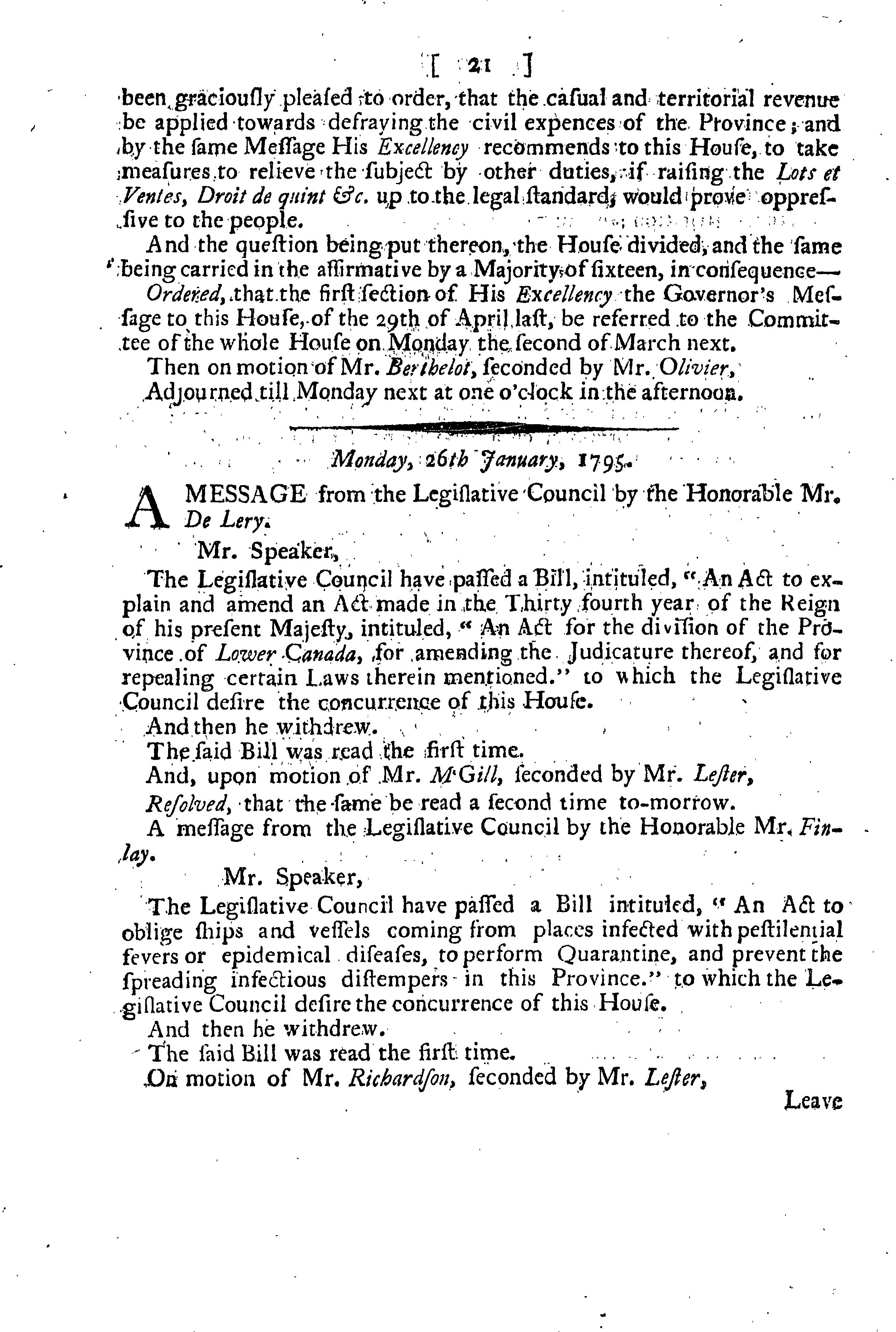 Journal of the House of Assembly of Lower-Canada from the 5th January to the 7th May 1795 ... : 1795