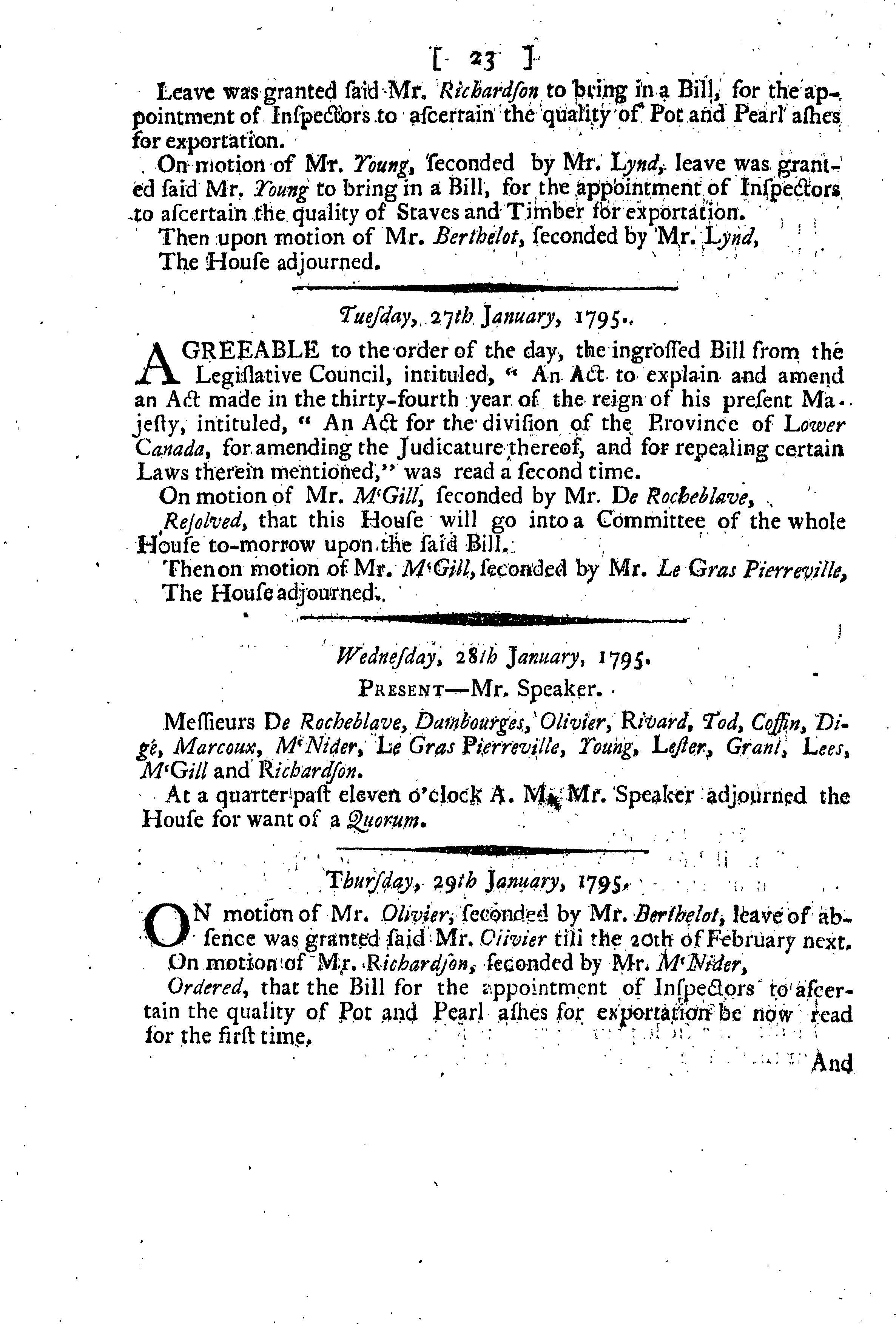 Journal de la Chambre d'assemblée du Bas-Canada du 5me janvier, au 7me mai 1795, inclusivement