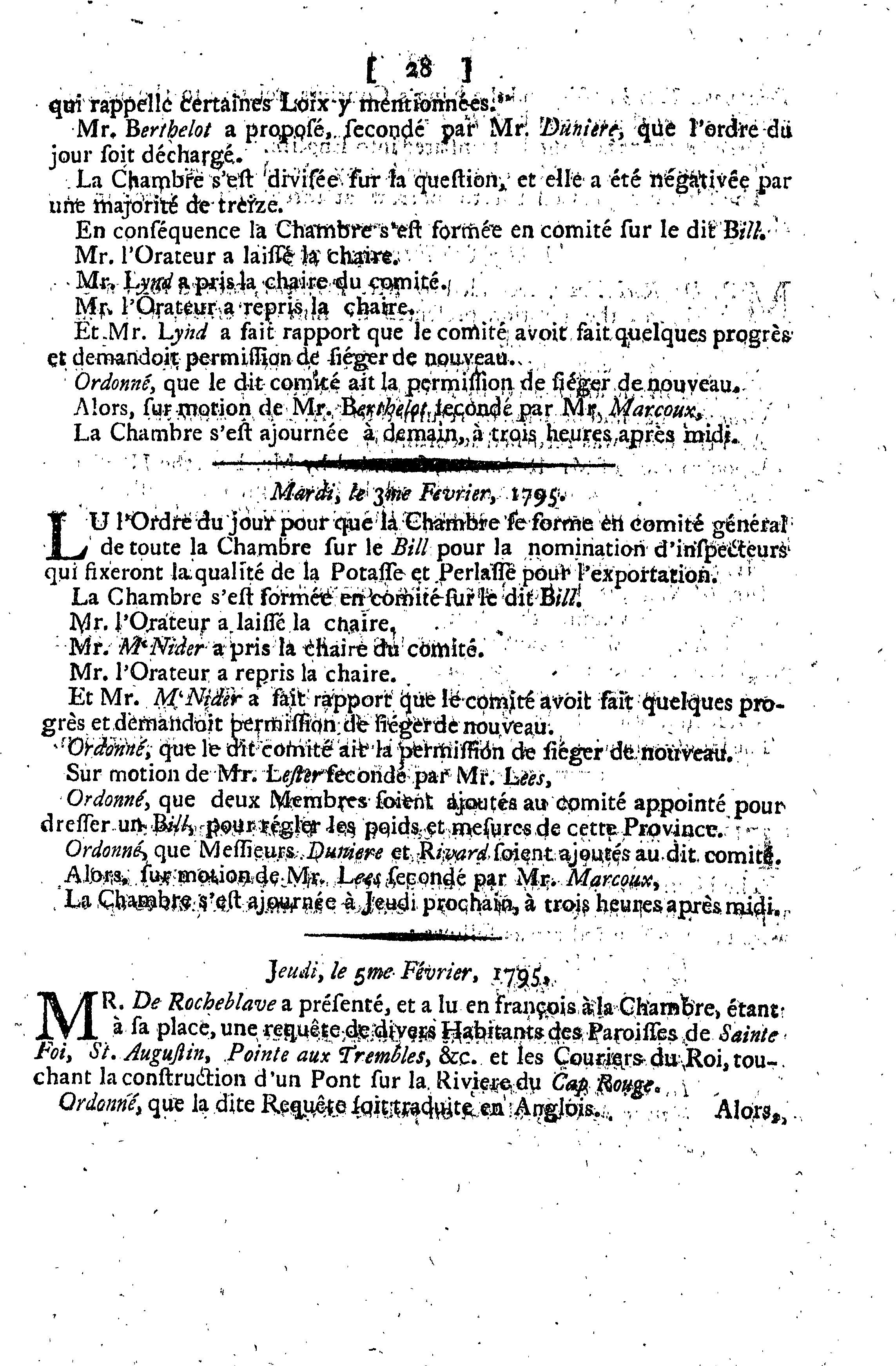 Journal de la Chambre d'assemblée du Bas-Canada du 5me janvier, au 7me mai 1795, inclusivement