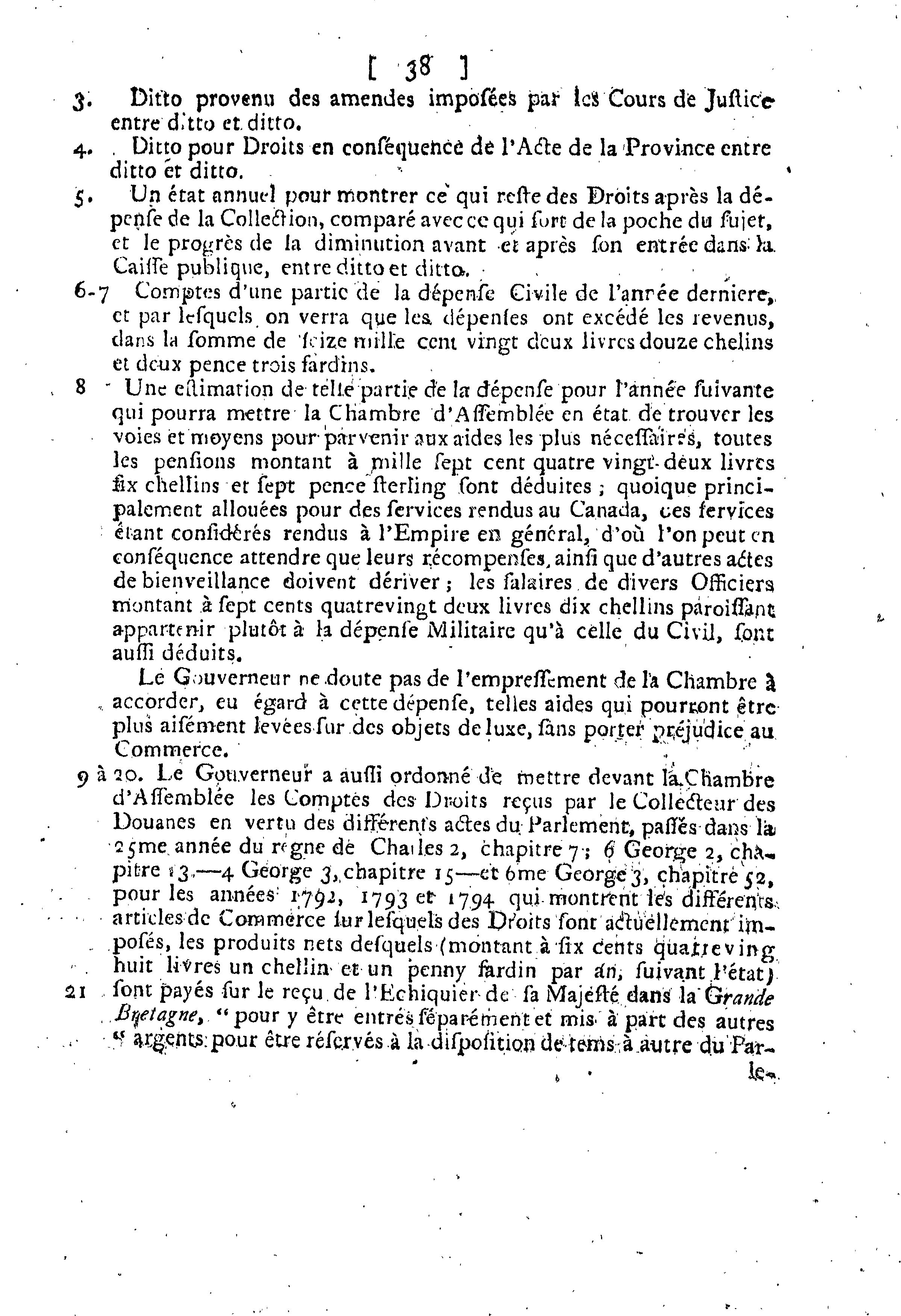 Journal de la Chambre d'assemblée du Bas-Canada du 5me janvier, au 7me mai 1795, inclusivement