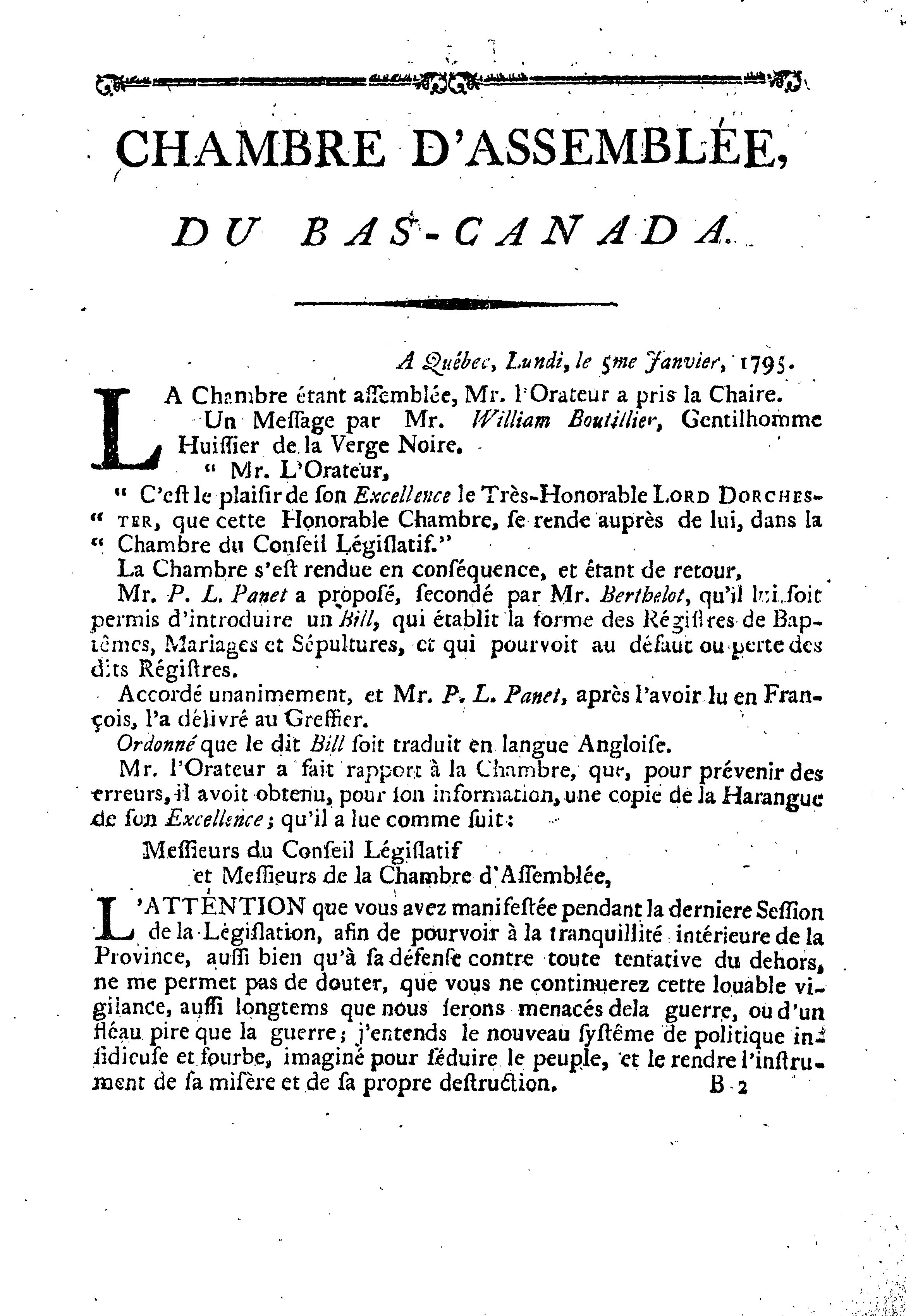 Journal de la Chambre d'assemblée du Bas-Canada du 5me janvier, au 7me mai 1795, inclusivement