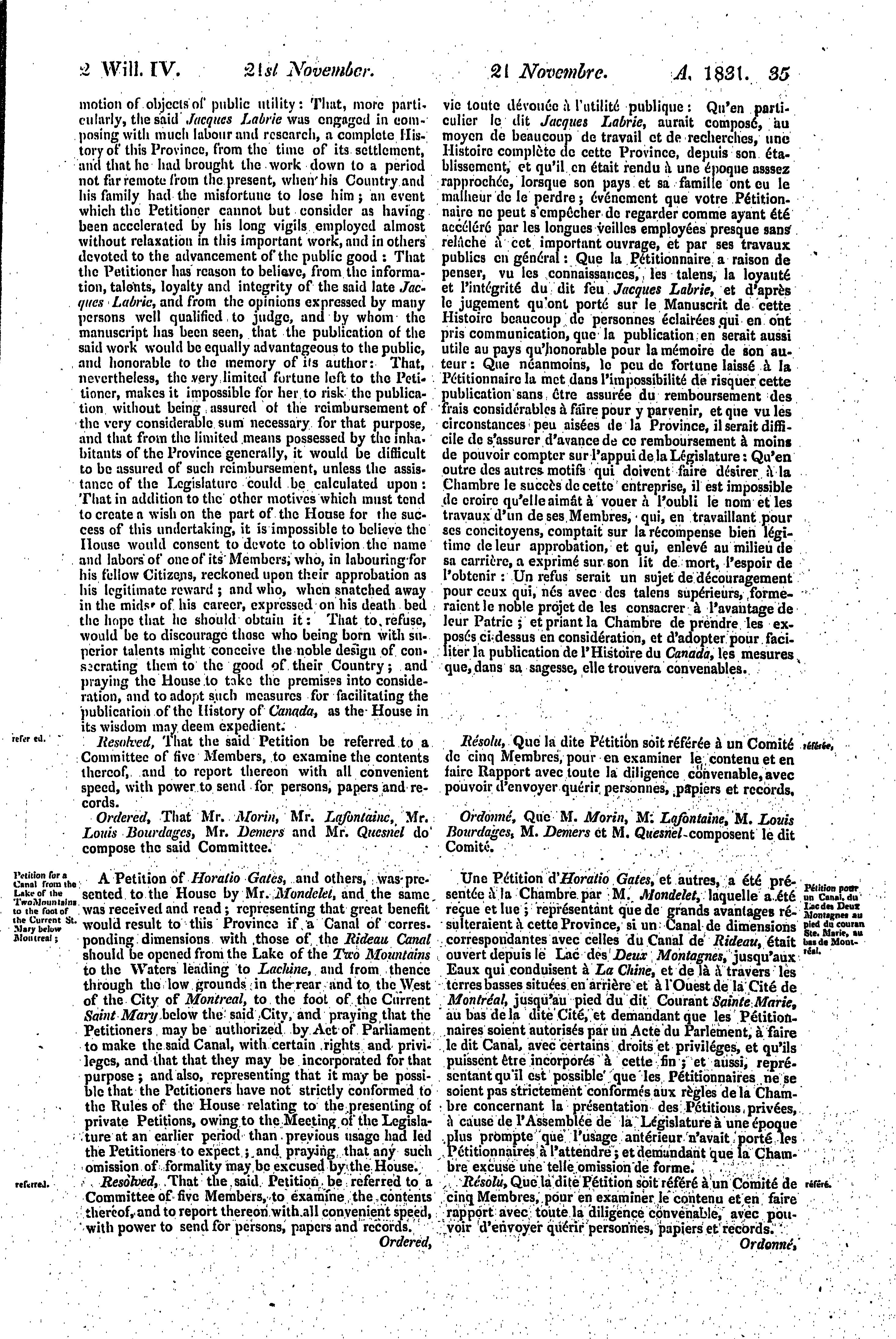 Journaux de la Chambre d'assemblée du Bas-Canada, depuis le 15 novembre 1831, jusqu'au 25 février 1832, dans la deuxième année du règne du Roi Guillaume Quatre, étant la deuxième session du quatorzième Parlement provincial de cette province, session 1831-2