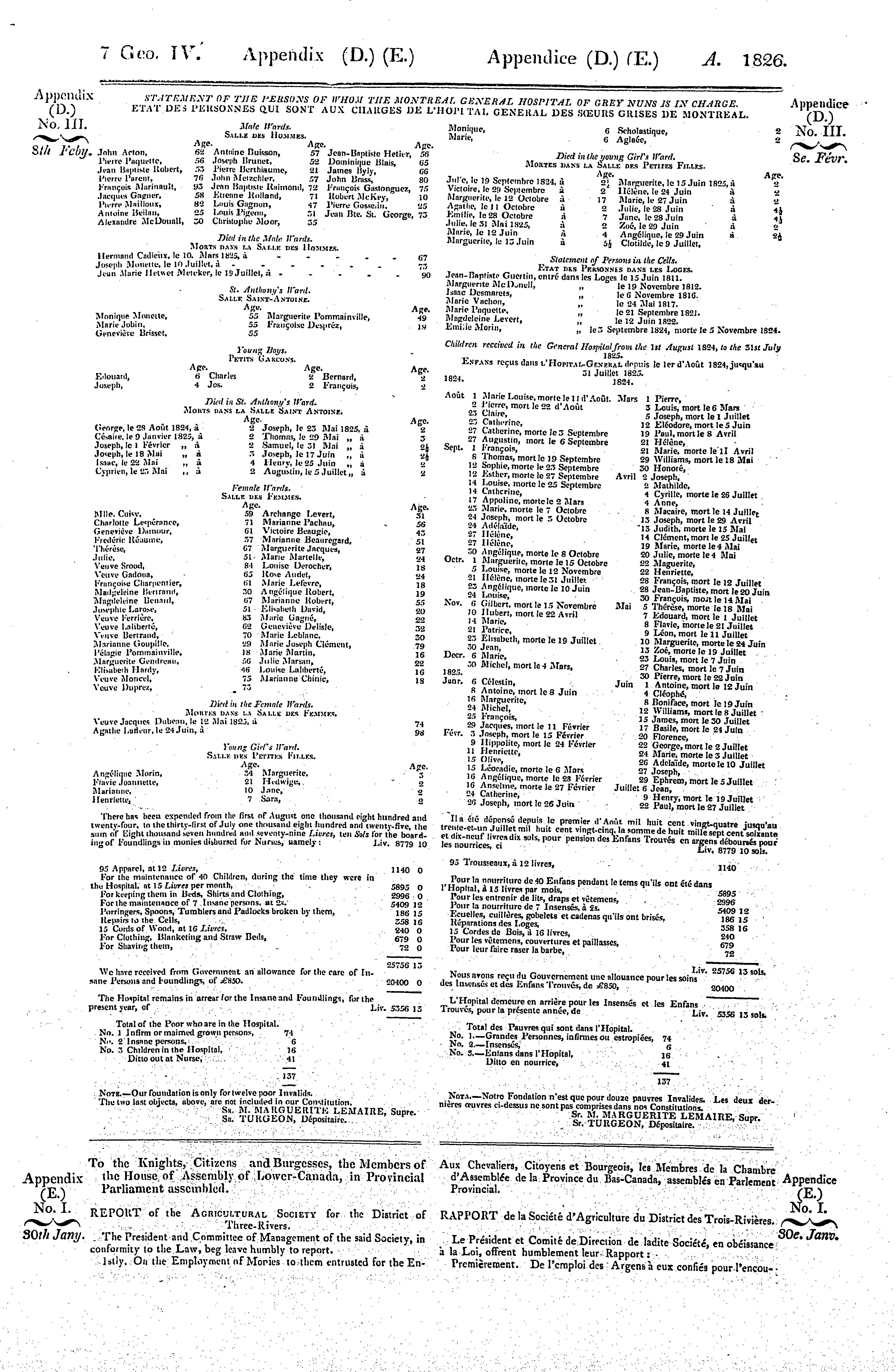 Appendix to the ... Journals of the House of Assembly of the province of Lower-Canada = Appendice ... des journaux de la Chambre d'assemblée de la province du Bas-Canada : Appendix to the XXXVth volume of the Journals of the House of Assembly of the province of Lower-Canada, second session of the twelfth provincial Parliament : [1826]