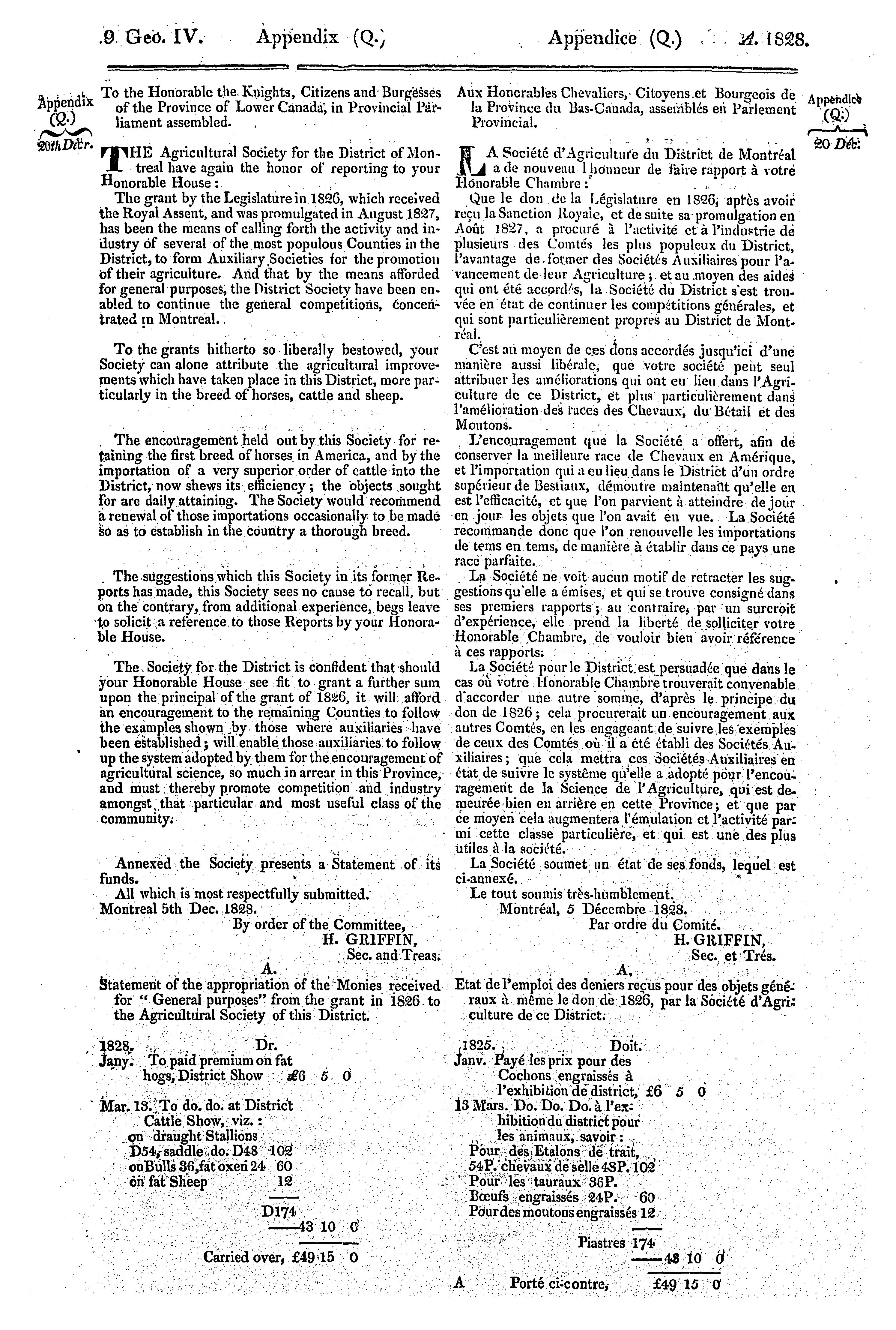 Appendice du XXXVIIIe volume des Journaux de la Chambre d'assemblée de la province du Bas-Canada, deuxième session du treizième Parlement provincial, sess. 1828-29