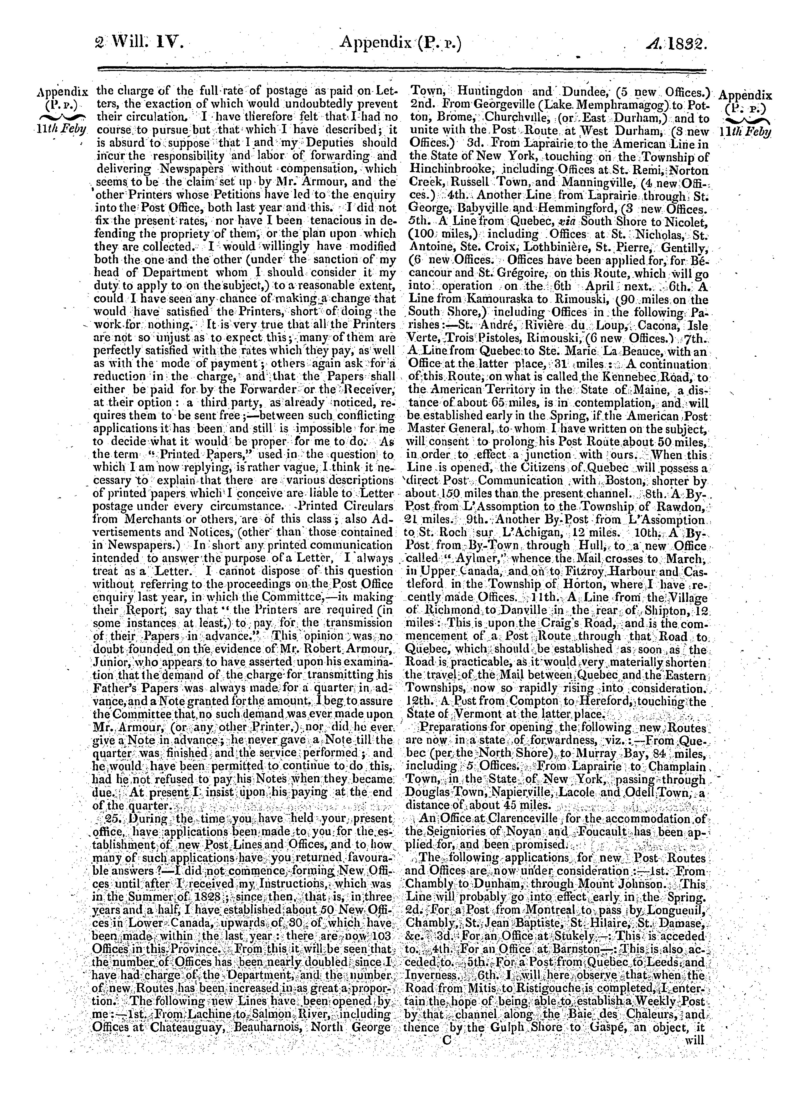 Appendice du XLIe volume des Journaux de la Chambre d'assemblée de la province du Bas-Canada, depuis le 15 novembre 1831, jusqu'au 25 fevr. 1832, dans la deuxième année du règne du Roi Guillaume Quatre, étant la deuxième session du quatorzième Parlement provincial de cette province