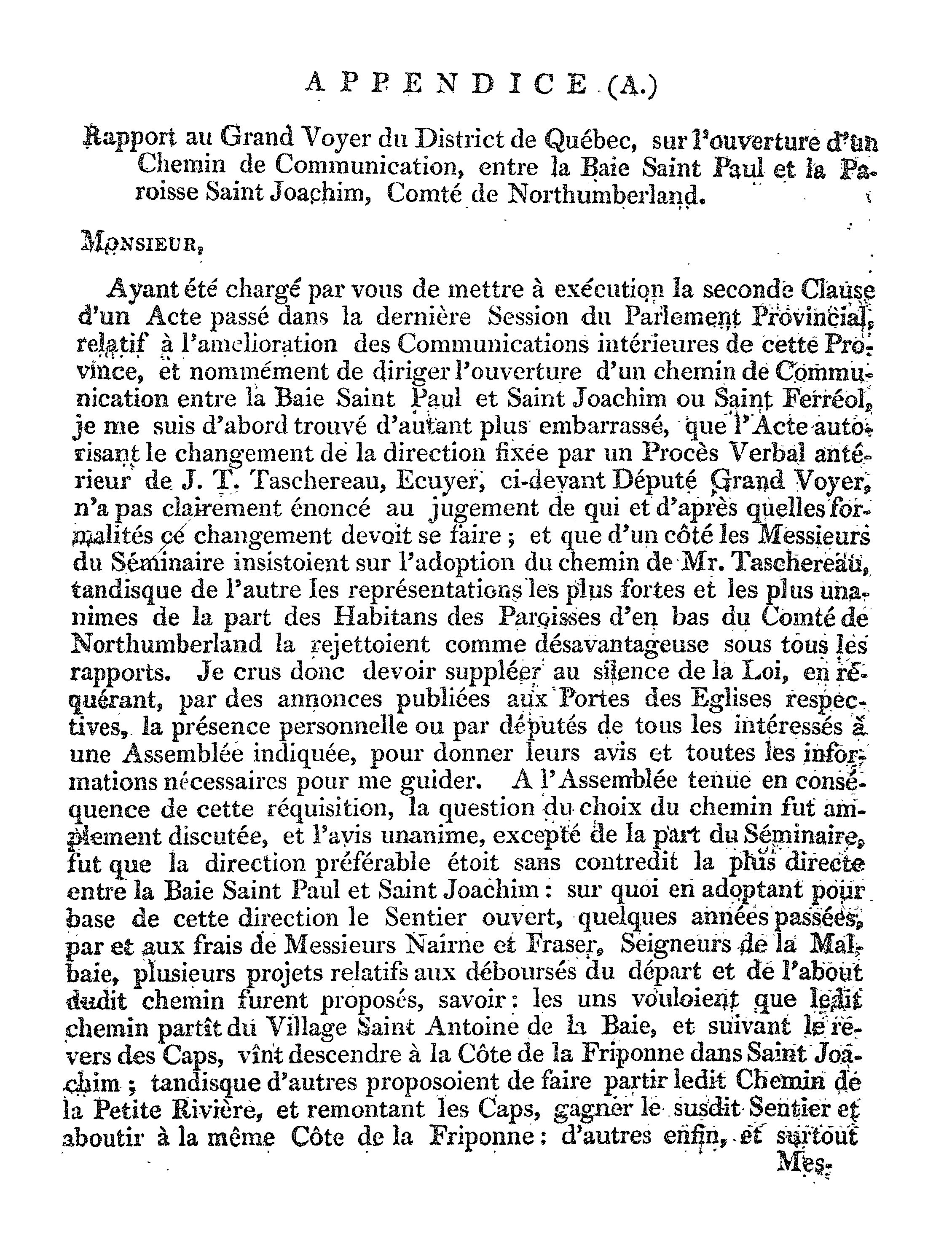 Appendice du XXVe volume des journaux de la Chambre d'assemblée de la province du Bas-Canada : deuxième session du huitième parlement provincial