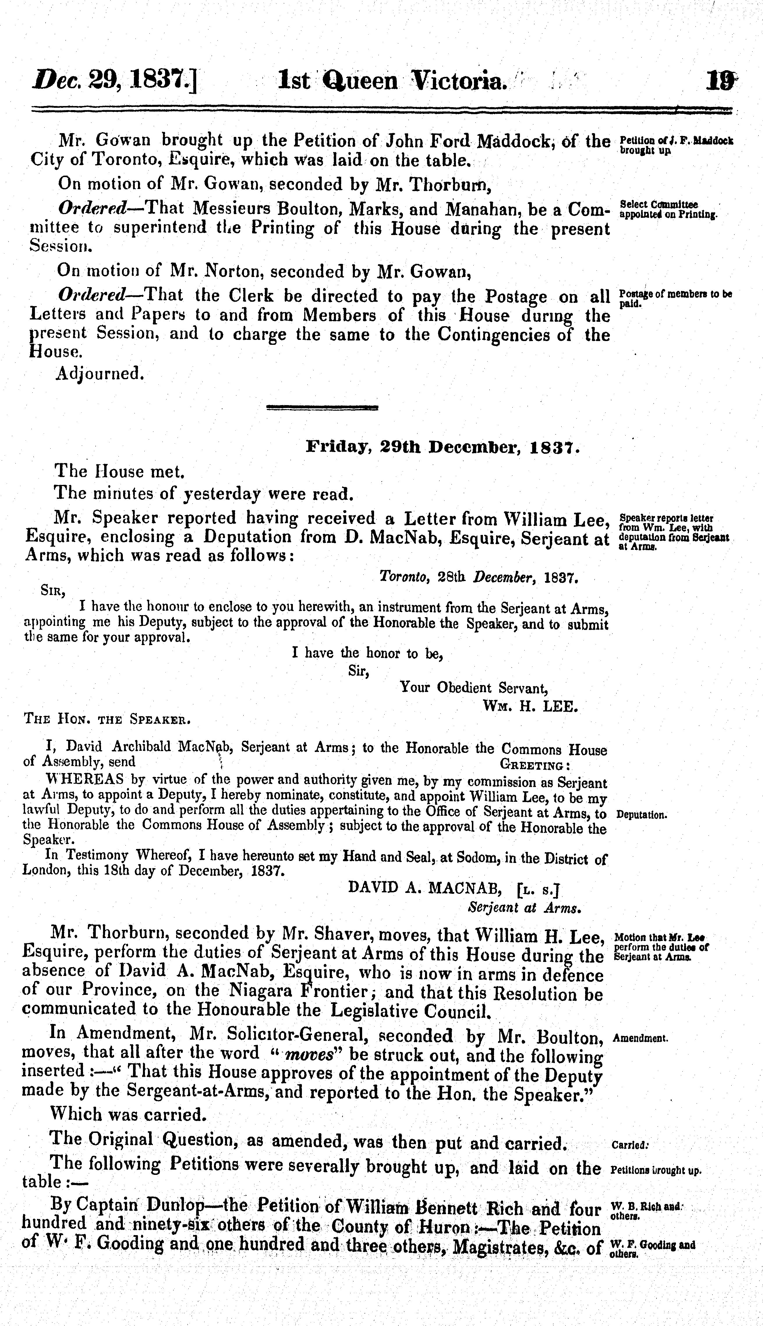 Journal of the House of Assembly of Upper Canada, from twenty-eighth day of December, 1837, to sixth day of March, 1838 ... : 1837/38