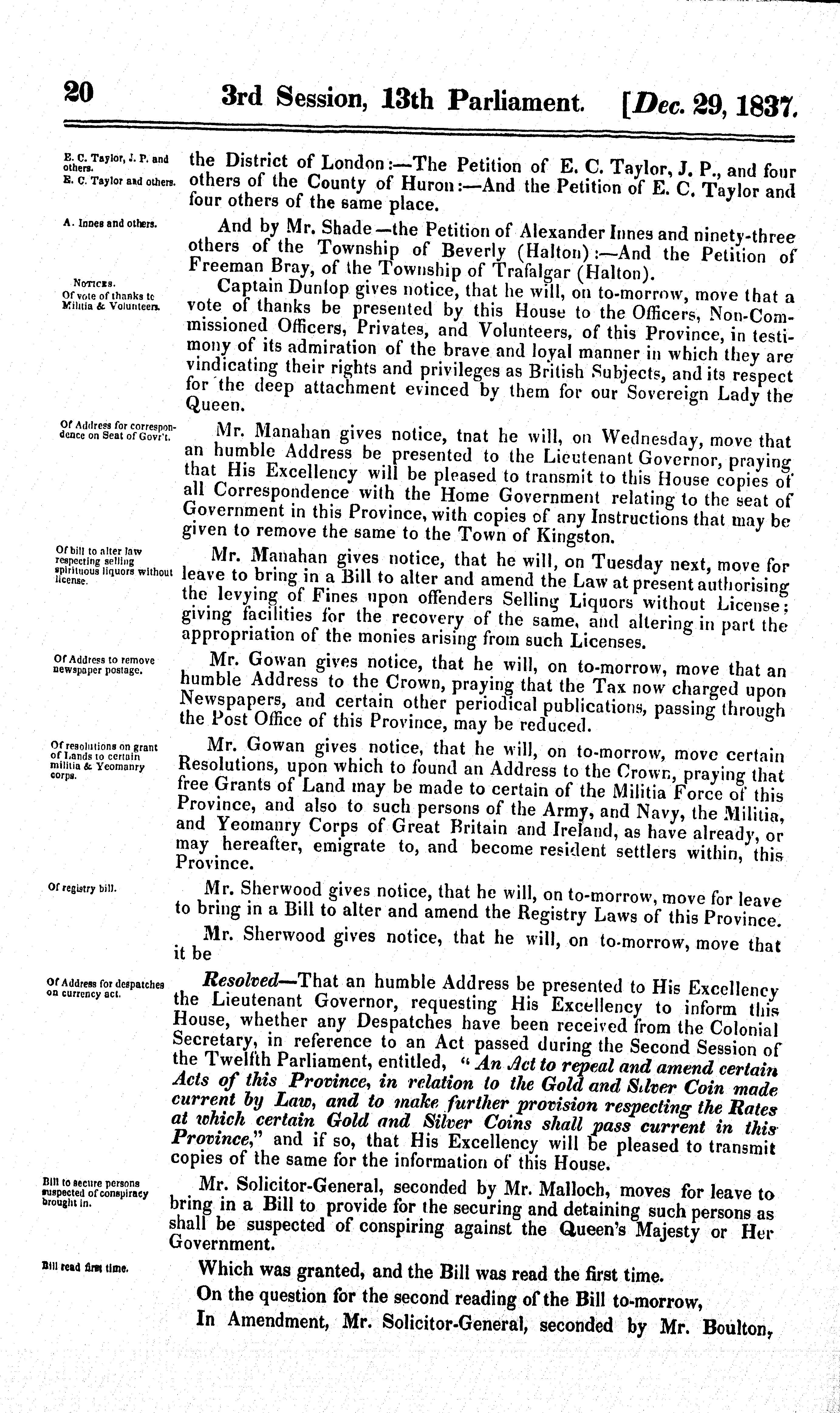 Journal of the House of Assembly of Upper Canada, from twenty-eighth day of December, 1837, to sixth day of March, 1838 ... : 1837/38