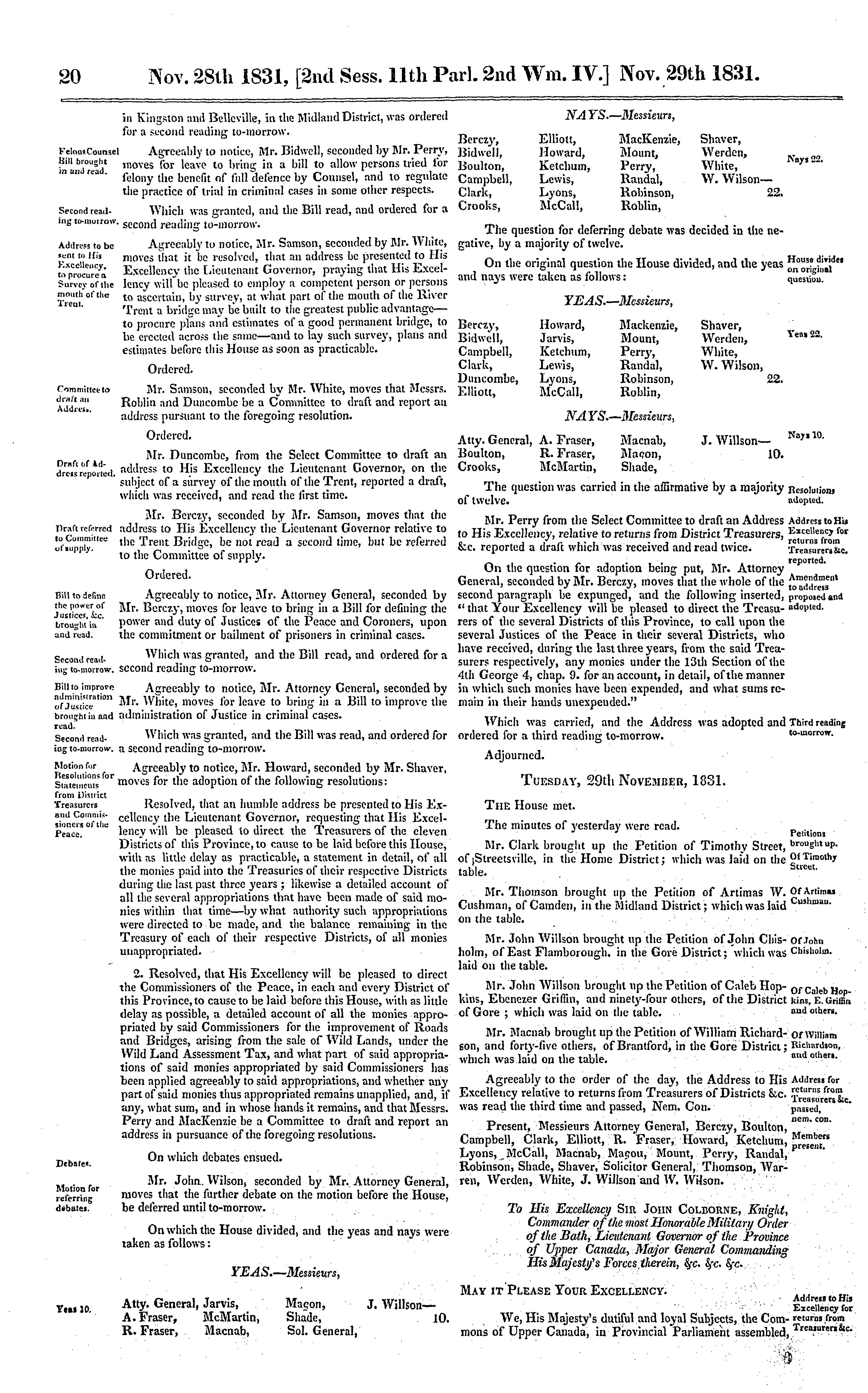 - Journal of the House of Assembly of Upper Canada, from the seventeenth November 1831 to the twenty-eighth January, 1832 ... : being the second session of the eleventh provincial Parliament : 1831/32