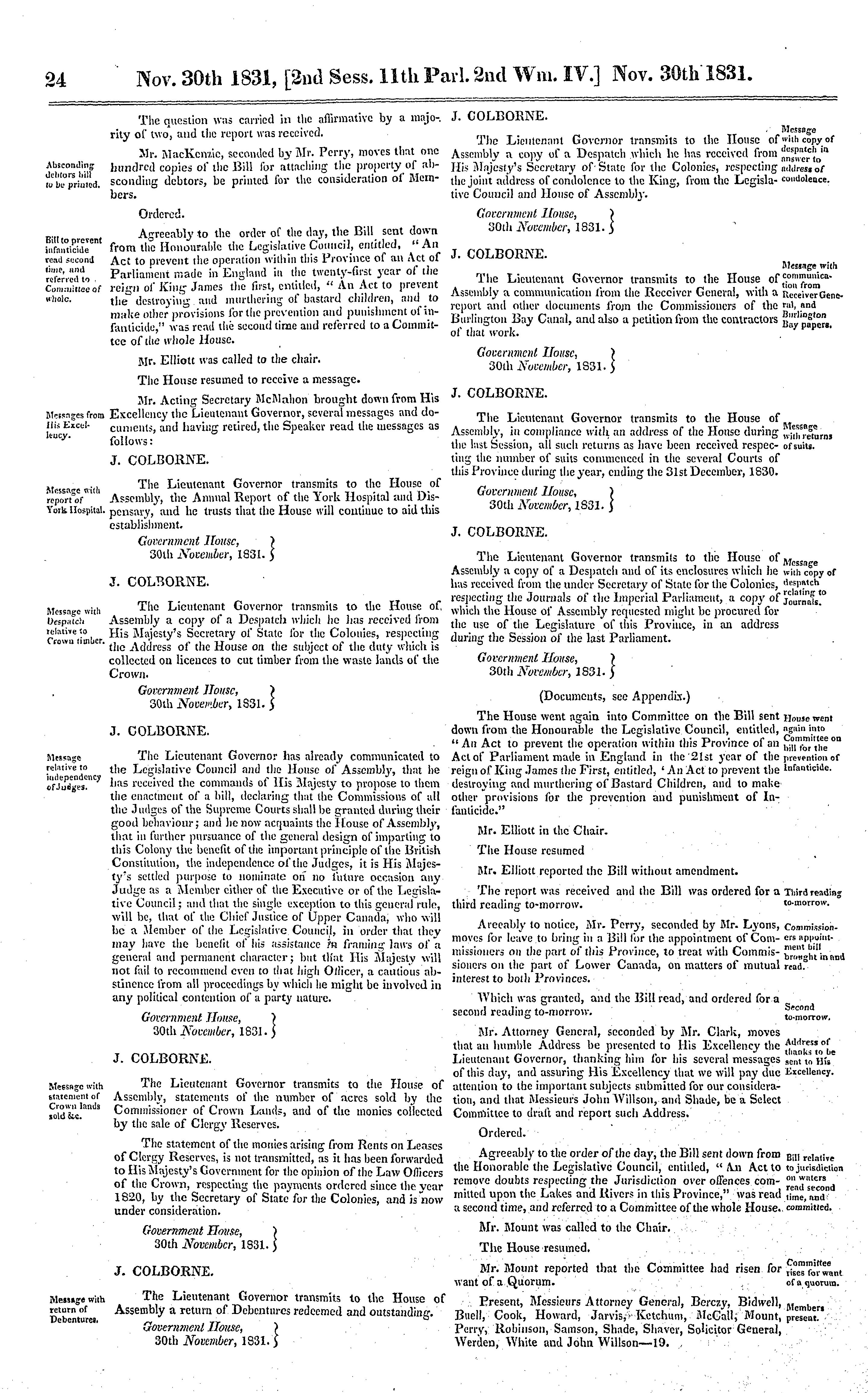 - Journal of the House of Assembly of Upper Canada, from the seventeenth November 1831 to the twenty-eighth January, 1832 ... : being the second session of the eleventh provincial Parliament : 1831/32