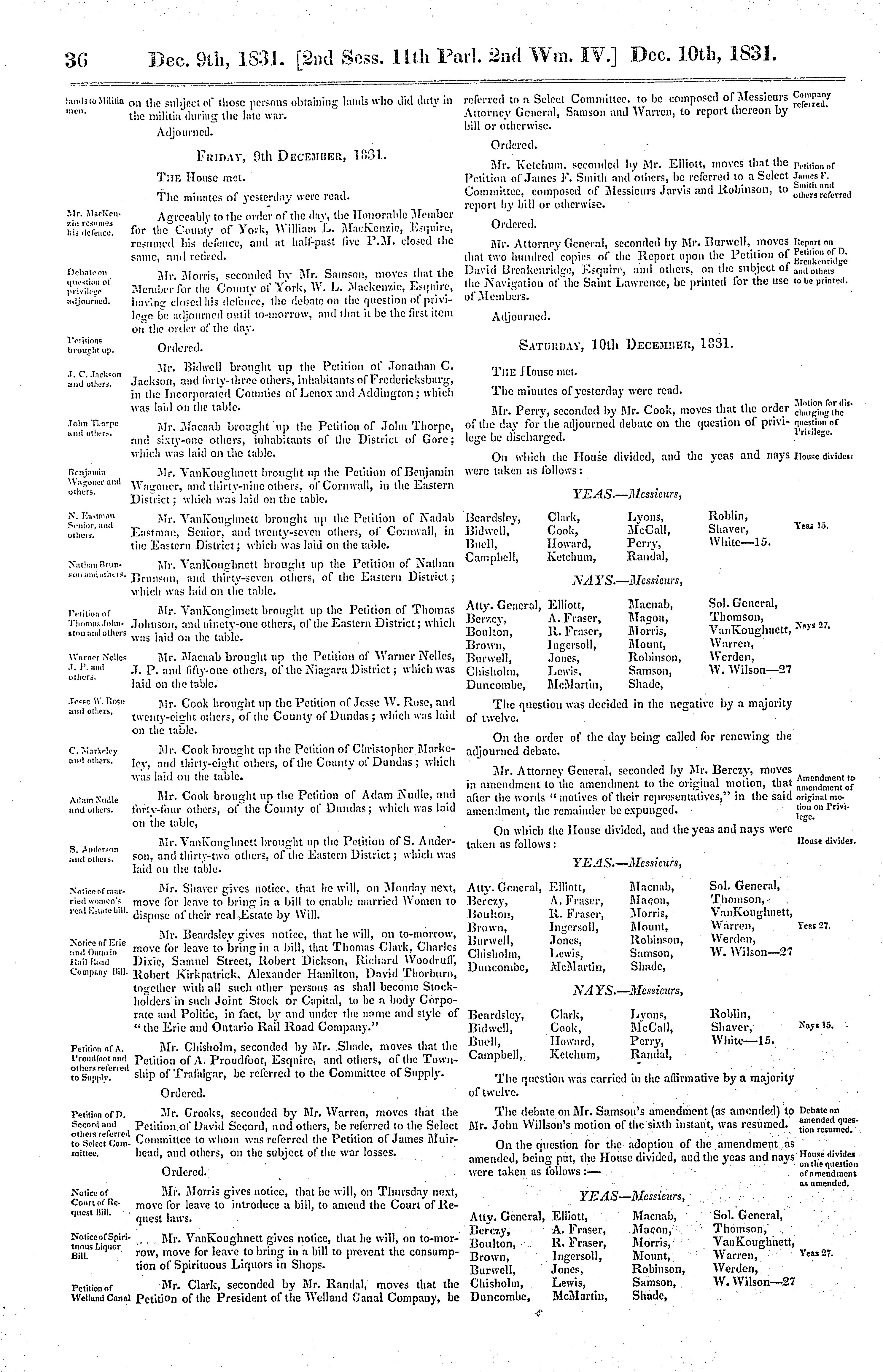 - Journal of the House of Assembly of Upper Canada, from the seventeenth November 1831 to the twenty-eighth January, 1832 ... : being the second session of the eleventh provincial Parliament : 1831/32
