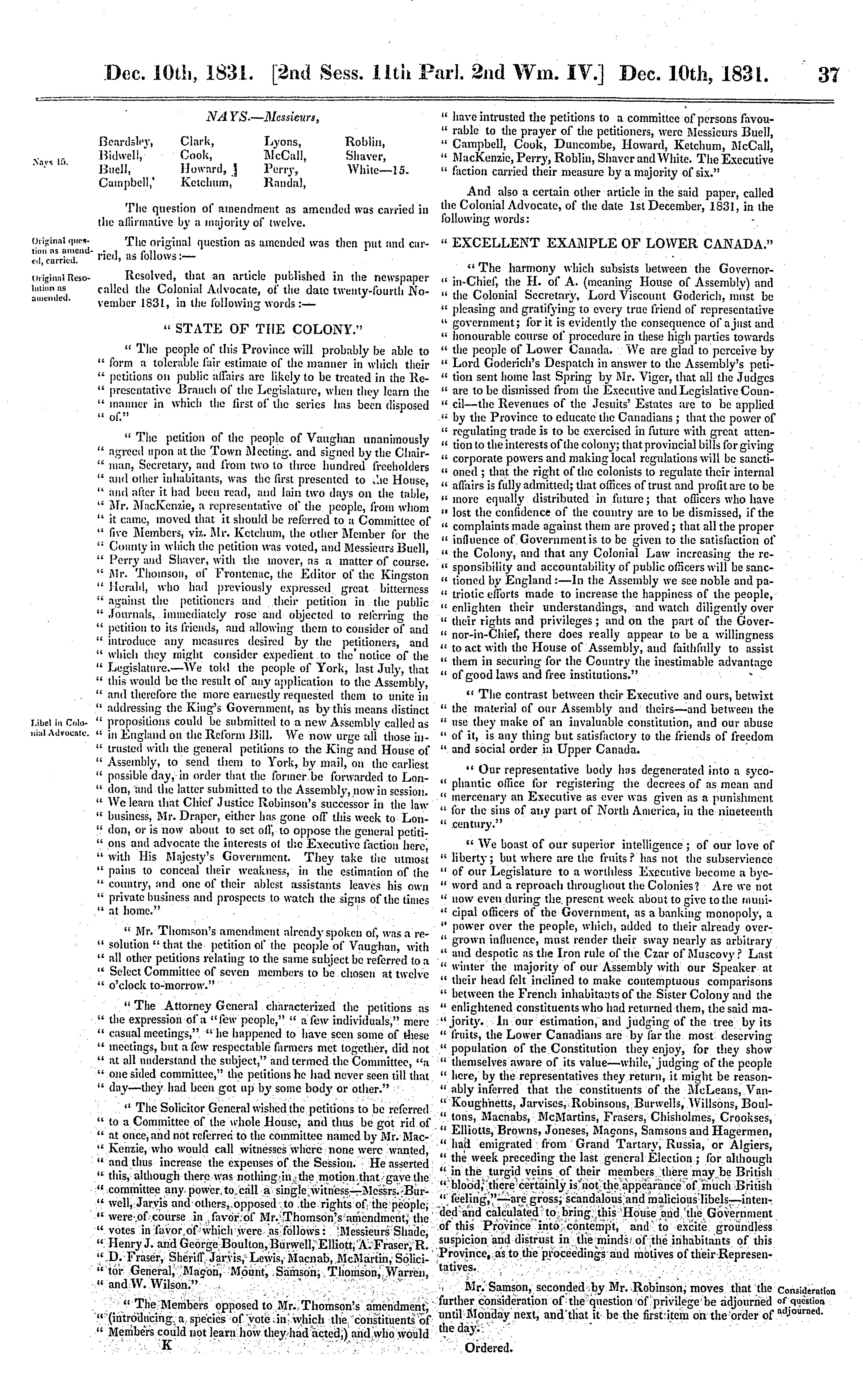 - Journal of the House of Assembly of Upper Canada, from the seventeenth November 1831 to the twenty-eighth January, 1832 ... : being the second session of the eleventh provincial Parliament : 1831/32