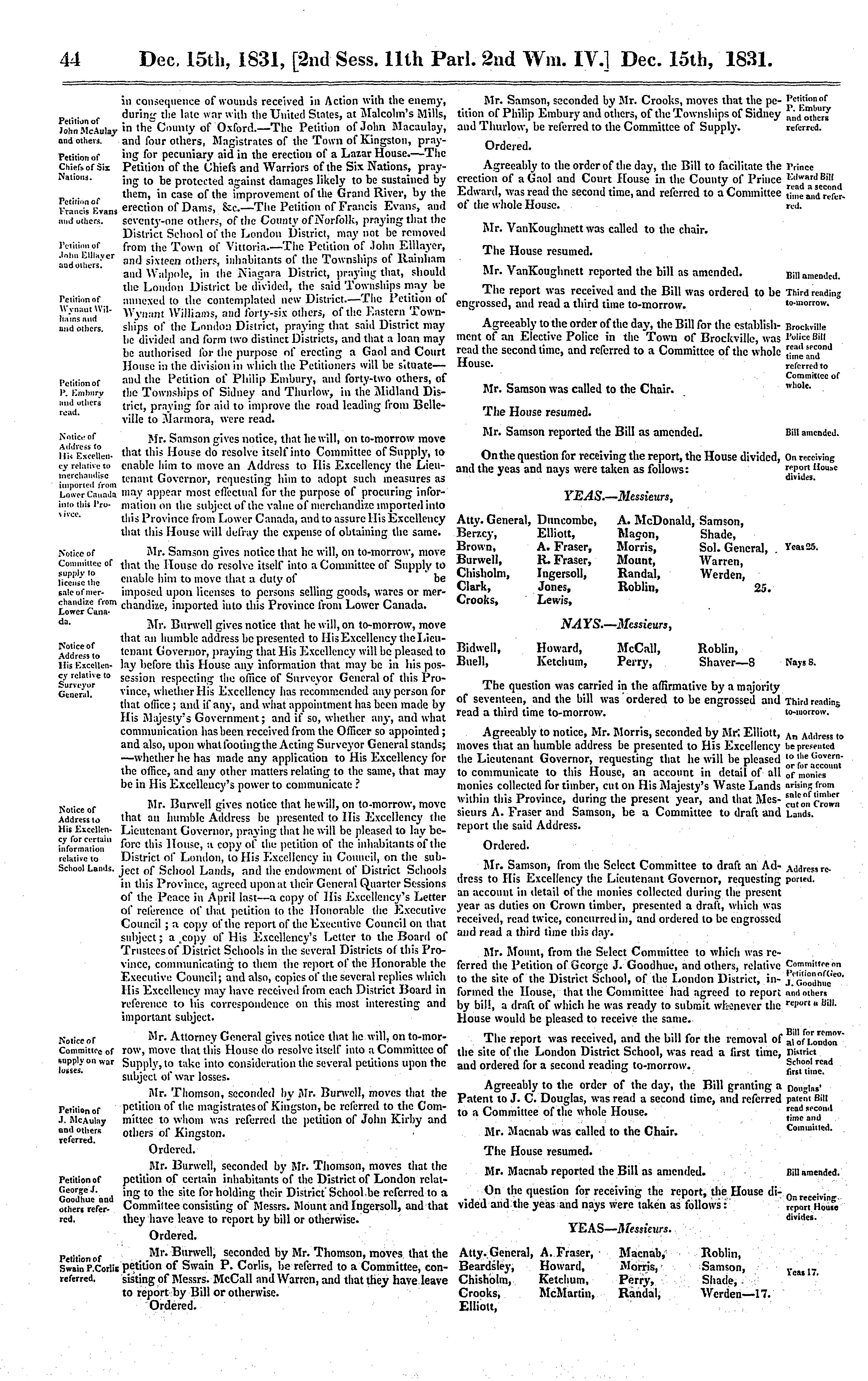 - Journal of the House of Assembly of Upper Canada, from the seventeenth November 1831 to the twenty-eighth January, 1832 ... : being the second session of the eleventh provincial Parliament : 1831/32