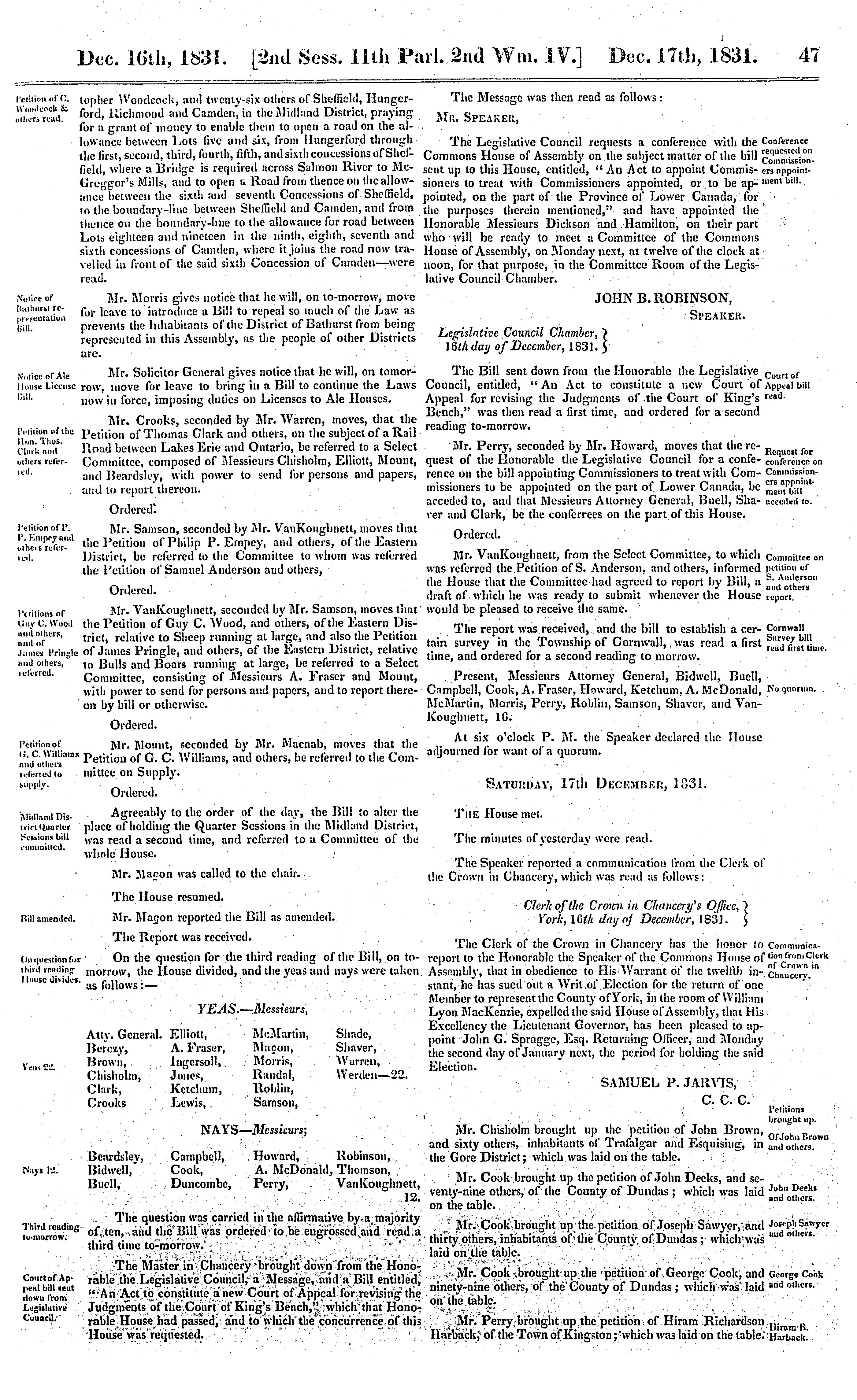 - Journal of the House of Assembly of Upper Canada, from the seventeenth November 1831 to the twenty-eighth January, 1832 ... : being the second session of the eleventh provincial Parliament : 1831/32