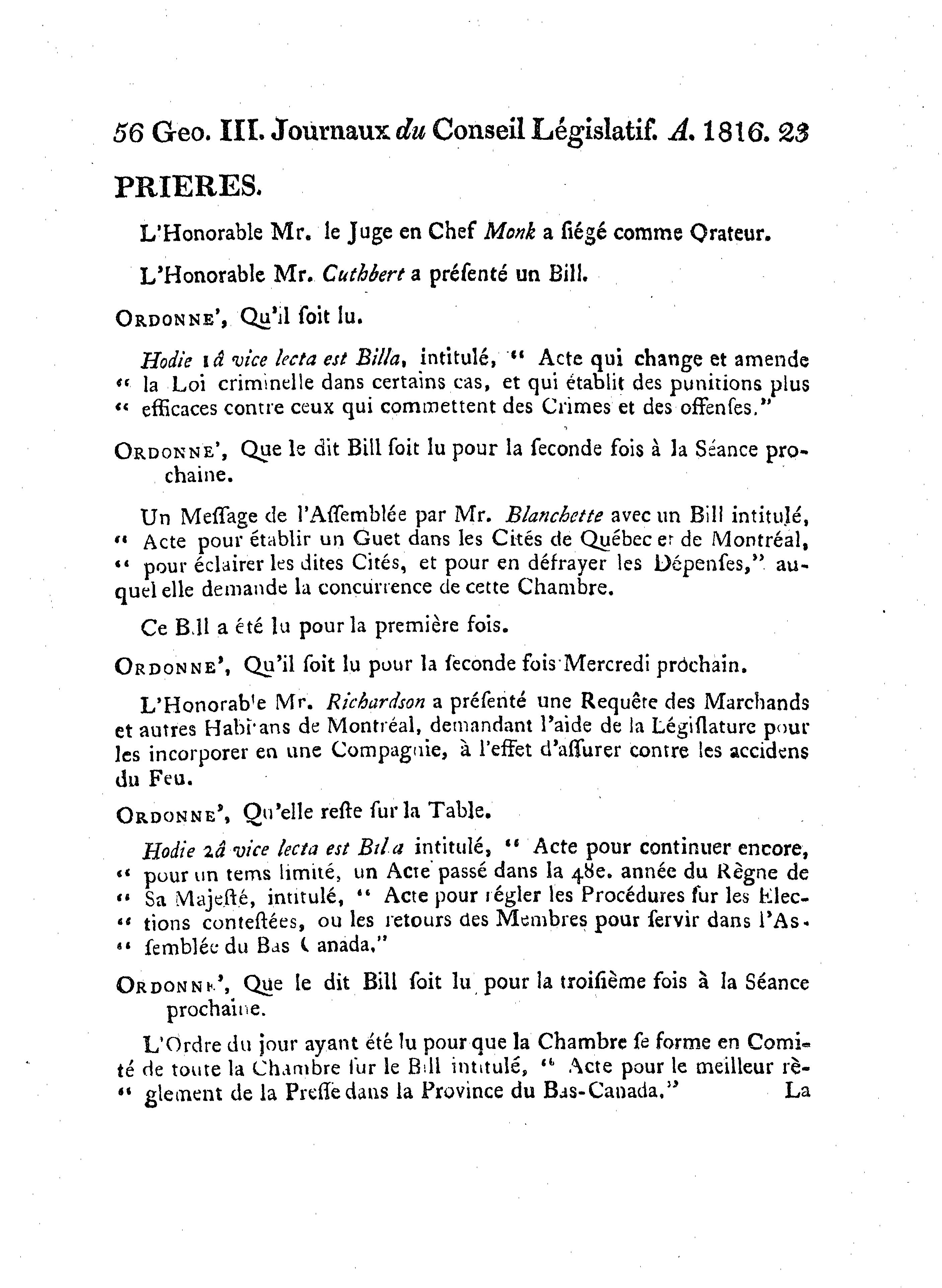 - Journaux du Conseil législatif de la province du Bas-Canada, étant la seconde session du huitième parlement provincial : 1816
