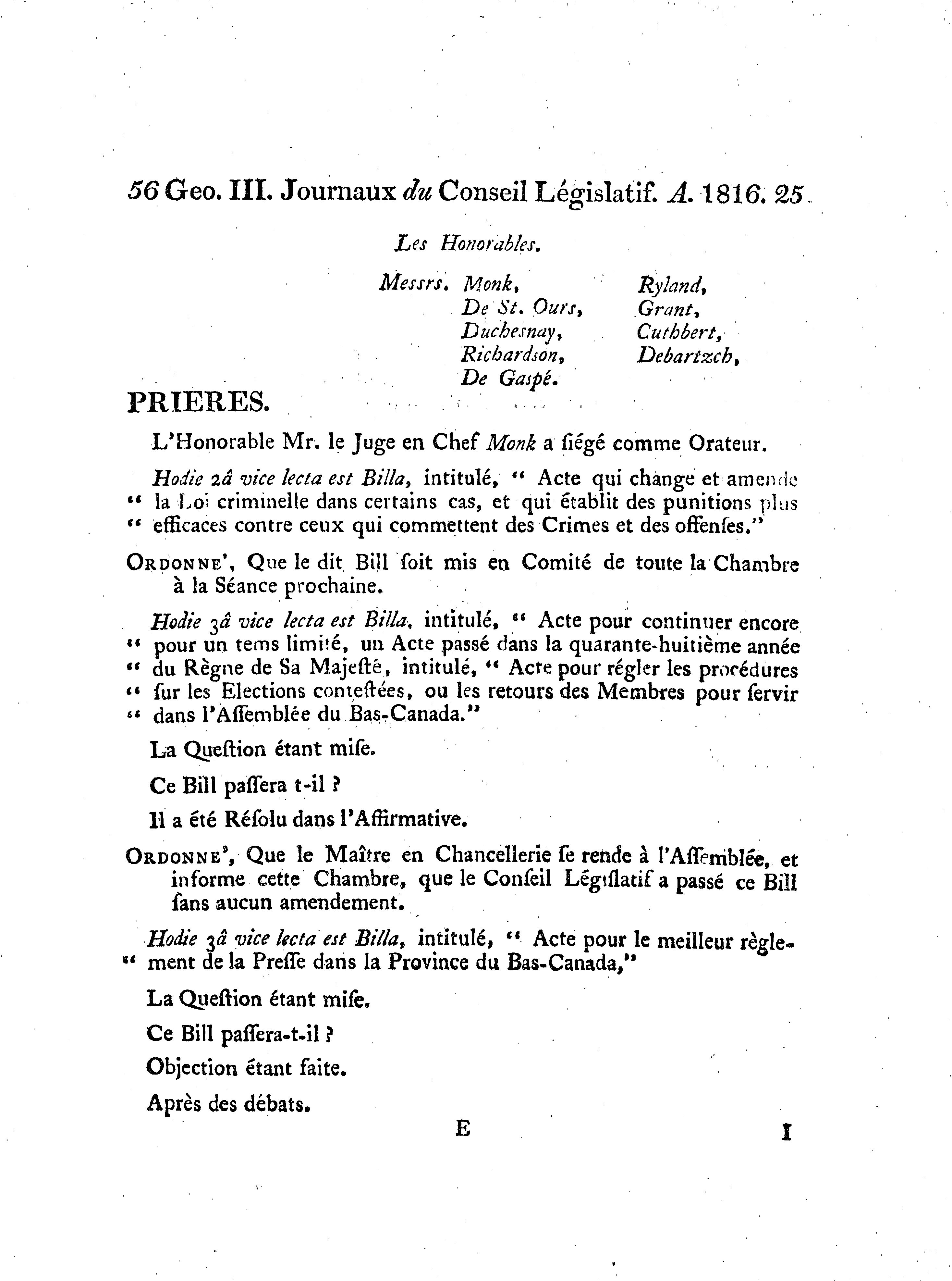 - Journaux du Conseil législatif de la province du Bas-Canada, étant la seconde session du huitième parlement provincial : 1816